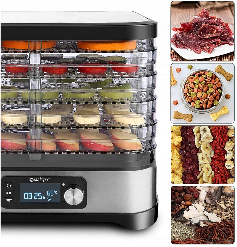 РЕГУЛЮВАННЯ ТЕМПЕРАТУРИ | ВИСОКА ПОТУЖНІСТЬ | ТАЙМЕР | 5 ЛОТОК | МОЖЛИВІСТЬ РОЗШИРЕННЯ | LED ДИСПЛЕЙ | СУЧАСНИЙ ДИЗАЙН | БЕЗ BPA | ДЛЯ ФРУКТІВ, ОВОЧІВ, ГРИБІВ, ТРАВ, М'ЯСА