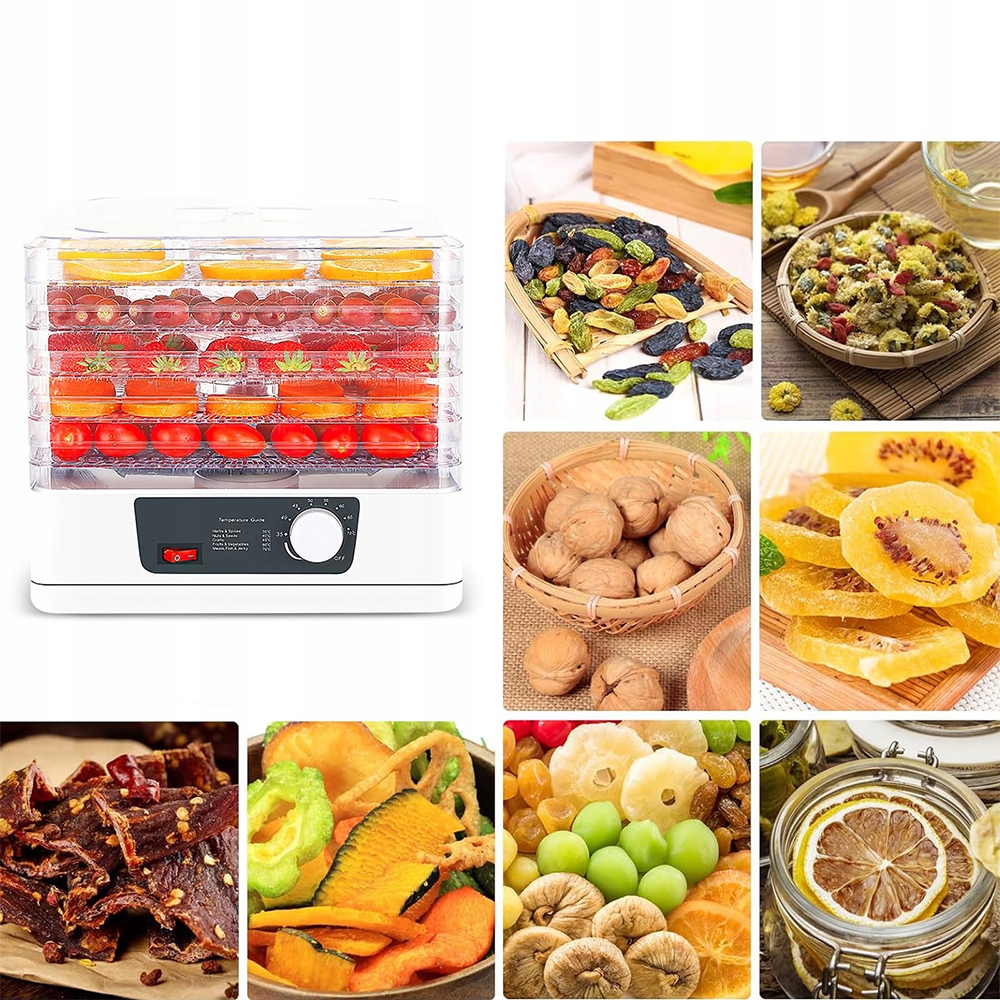 - Оснащений передовою технологією сушіння, цей осушувач їжі видаляє вологу та зберігає оригінальний смак ваших улюблених страв. Це чудовий спосіб зберігати їжу.