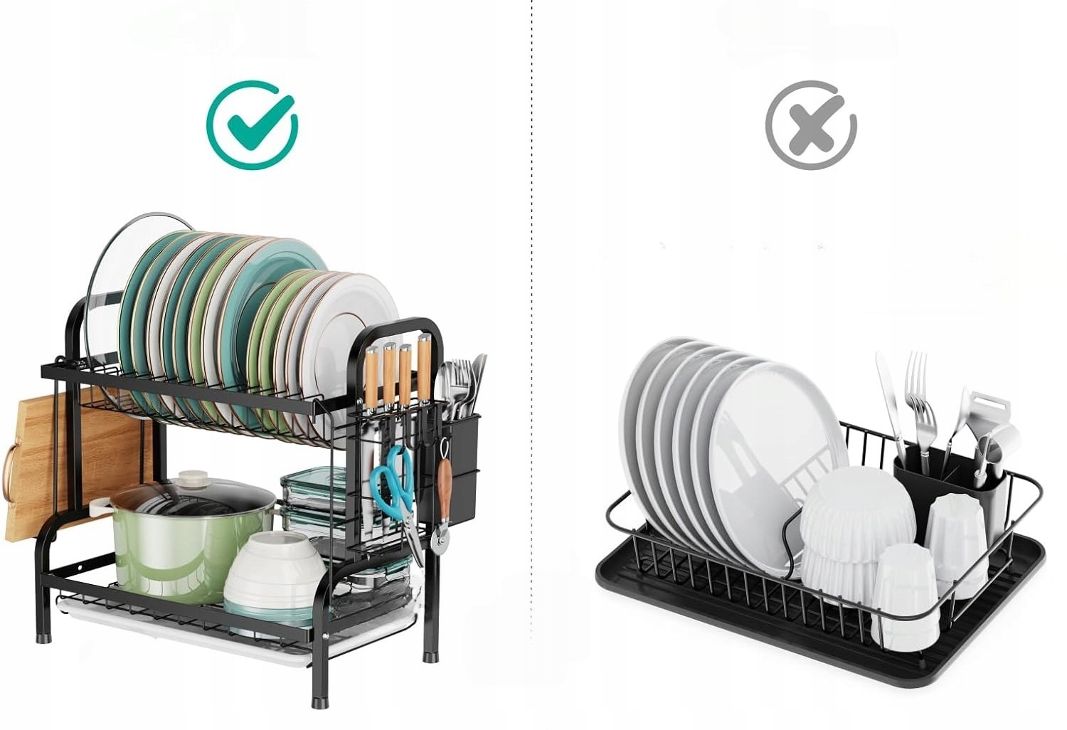 ✅ ✅ ✅ конструкції протоки столових приладів та посуду багатьох розмірів для зберігання або сушіння. Він ідеально відповідає кухонним тарілкам (він підійде 22 штук) , чаші, посуд і не тільки.