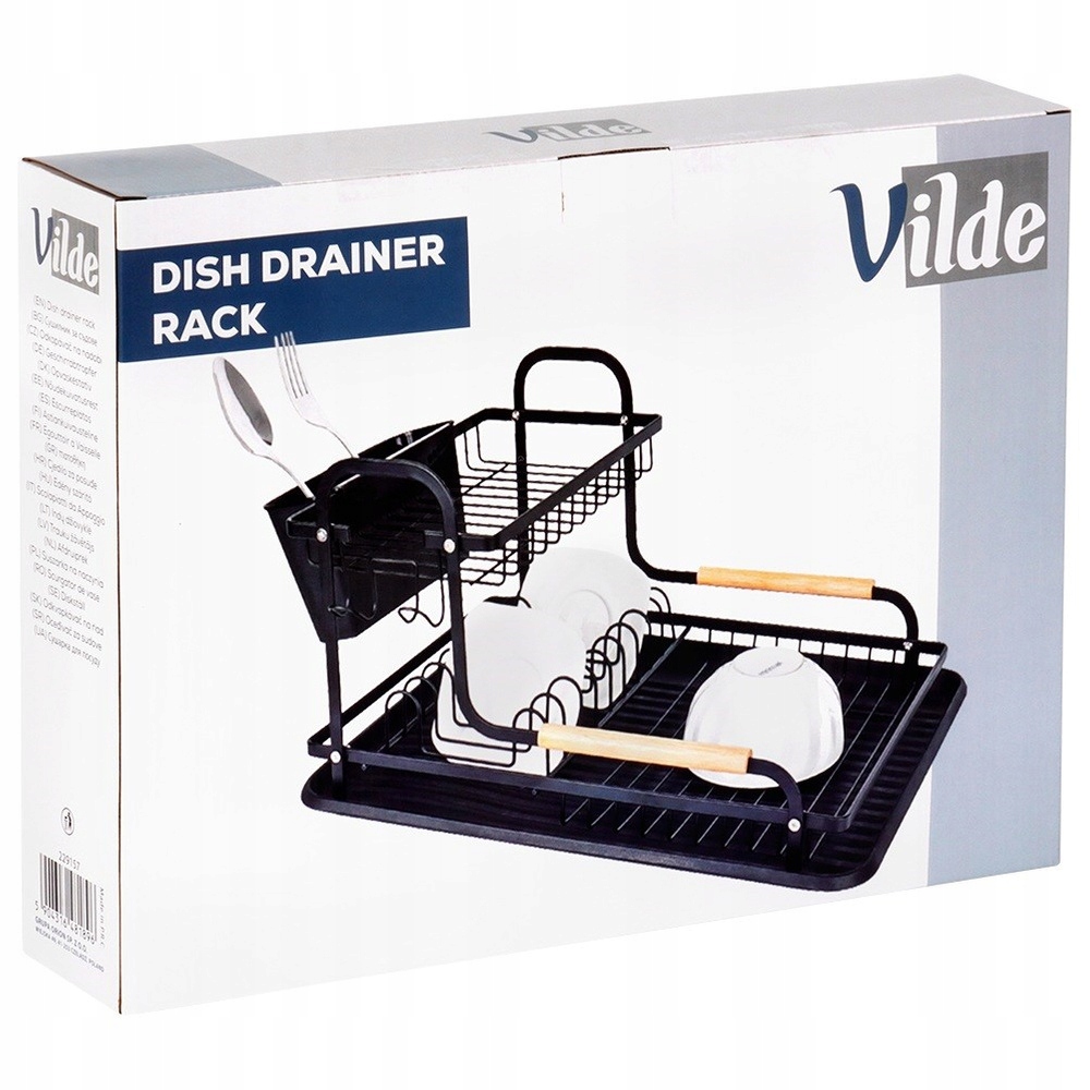 - Модний дизайн - утримується у промисловому стилі горища. Сушарка буде виглядати красиво на кожній кухні. Він підходить як до сучасної, так і класичної кухні. 4 Виготовлений з міцних матеріалів. Завдяки цьому ви забудете про невпорядковані судна та вологі сліди на стільниці шаф за раковиною. Сушарка надзвичайно простора, дозволяє одночасно висихати посуд на двох рівнях. Важливий елемент кухонного обладнання. оригінальний продукт Vilde. зроблено відповідно до європейських стандартів. (G): 1524