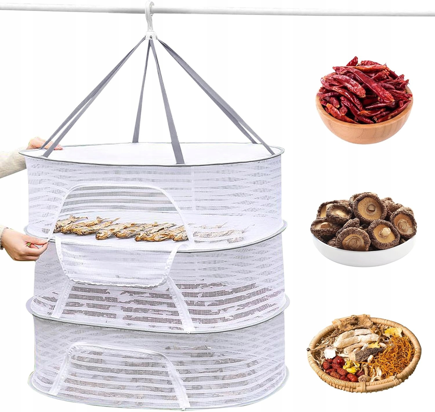 🥬 3-шар-сітка для сушіння трав. Сушіння сітки, що висить сушіння, з складною сіткою на блискавці для висихання висячої сітки для сушіння трав, рослин, м’яса, квітів, цибулі, овочів 🥬