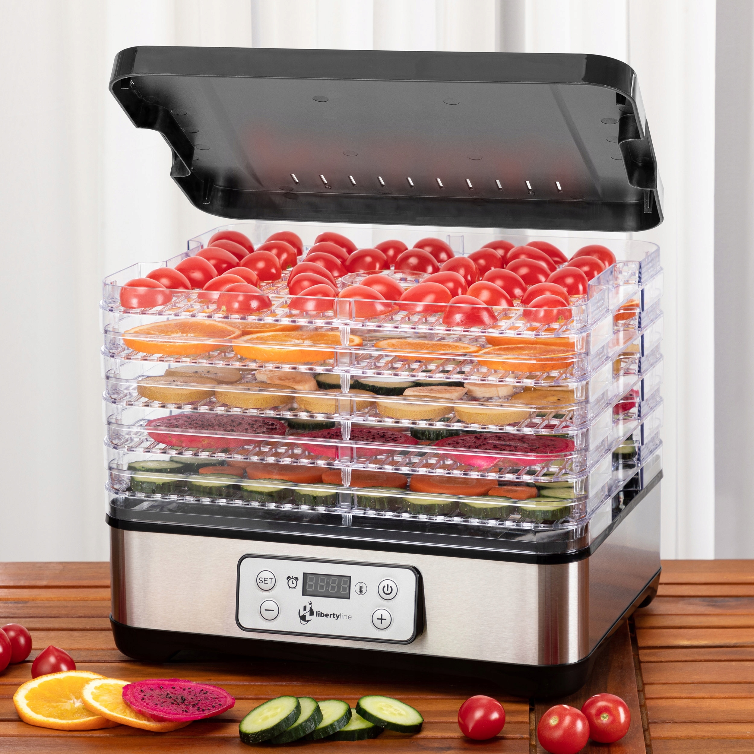 СУШАРКА ДЛЯ ГРИБІВ, ФРУКТІВ, ОВОЧІВ, М'ЯСА, ХАРЧУВАННЯ, ЗРУЧНІСТЬ, ТАЙМЕР
