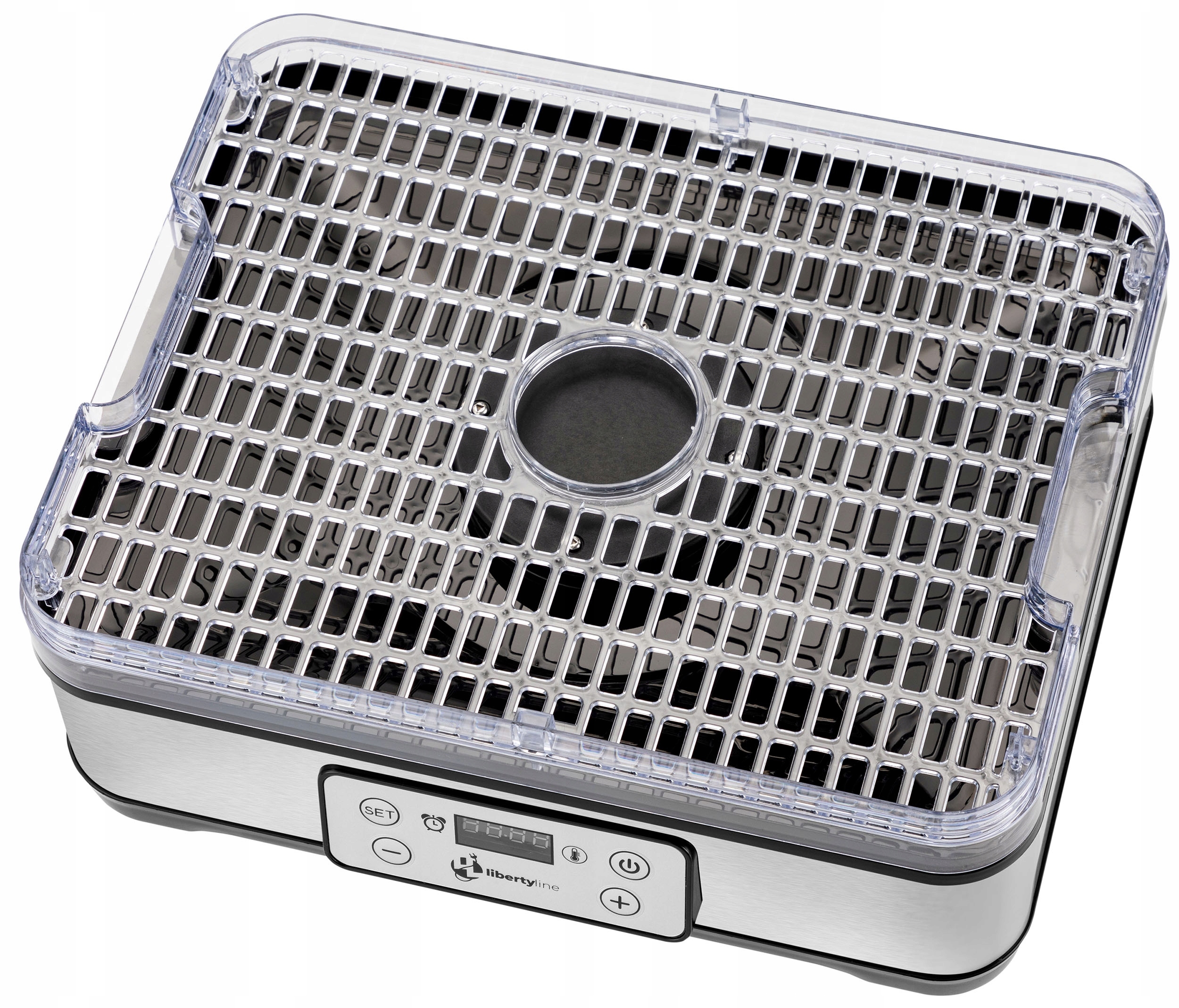 Основа сушарки виготовлена з міцного поліпропілену (ПП), прозорі полиці — з полістиролу (ПС), а зовнішня кришка — з нержавіючої сталі. Таке поєднання матеріалів забезпечує довговічність і елегантний зовнішній вигляд пристрою.