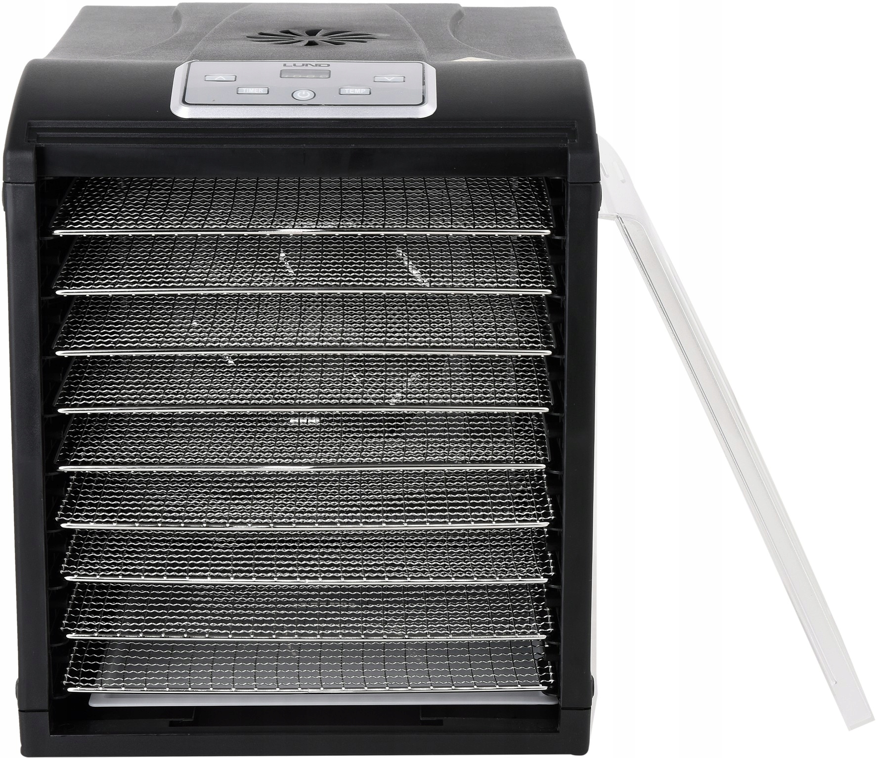 Електрична сушарка Lund, призначена для сушіння харчових продуктів: фрукти, овочі, гриби, квіти, трави, м'ясо та риба. Це дозволяє підтримувати харчові та смакові цінності їжі, зберігаючи її протягом декількох місяців. Завдяки побудованому таймеру можна запрограмувати сушіння від 0,5 до 19,5 годин. Додатковою перевагою є аксесуари - сітка та лоток для сушіння дрібних продуктів, наприклад трави та чай.