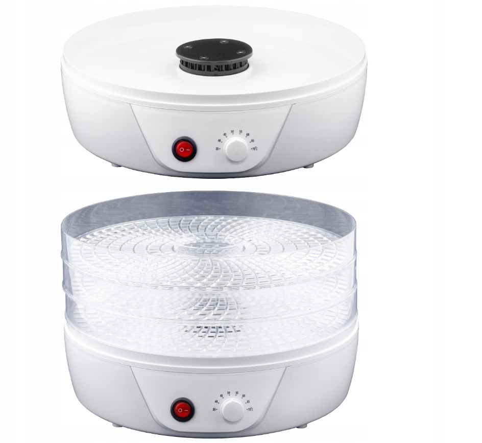 Пристрій має можливість регулювати температуру сушіння в діапазон 35-70 ˚Cі вбудований вентилятор, завдяки якому вироби будуть висушені швидко, ретельно і рівномірно, зберігаючи весь свій аромат і смак.