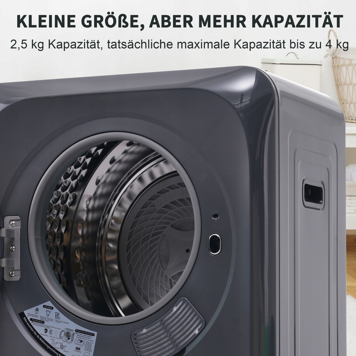 Характеристики продукту: Ефективний помічник у сушці: хочете висушити свій одяг швидко та ефективно без втрати якості? Номінальна ємність нашої сушарки становить 3 кг, але корисна ємність до 4 кг, що робить її ідеальною для сушіння вдома. Потужність 850 Вт забезпечує ідеальні результати сушіння щоразу.