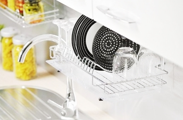 Zбільше простору як у шафі, так і на стільниці, де традиційно встановлюються сушарки для посуду.