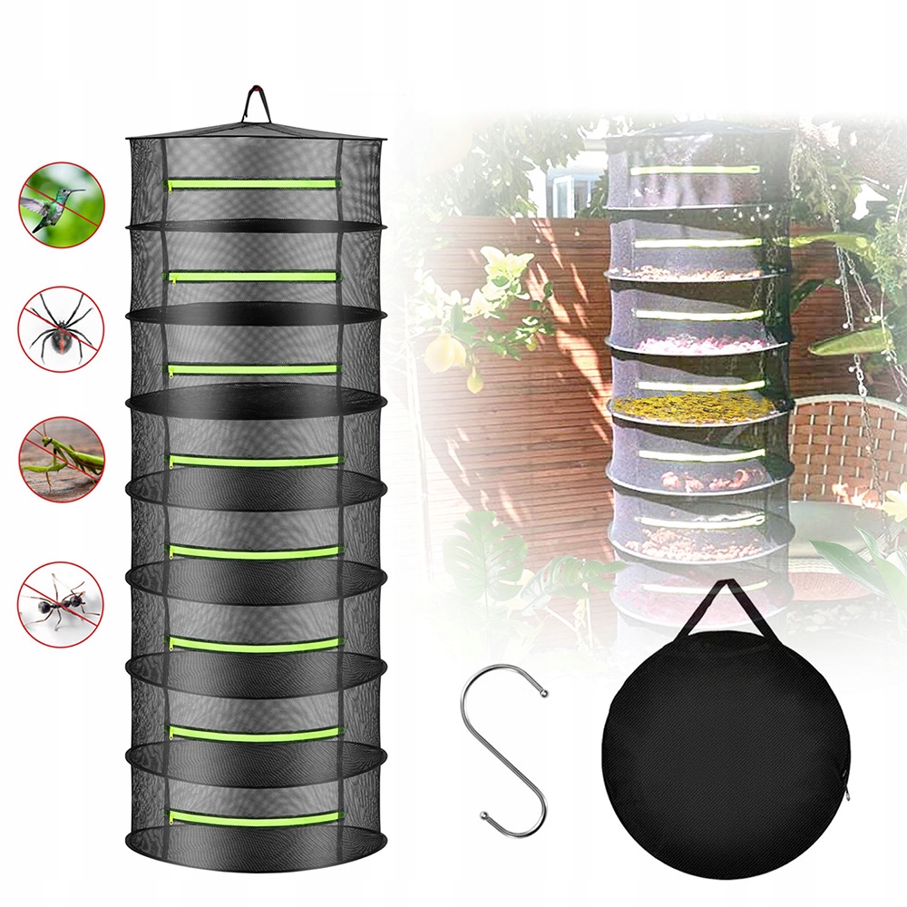дихаюча і міцна --- висяча трав'яна сушарка виготовлена з дуже гнучкого, довговічного поліестеру з невеликою сіткою, яка дихає і провітрюється, що дозволяє навіть сушити рослини та запобігти входу птахів та маленьких тварин. Кожен шар має побудоване кільце з нержавіючої сталі, що забезпечує стабільну підтримку і не деформується навіть після тривалого використання.