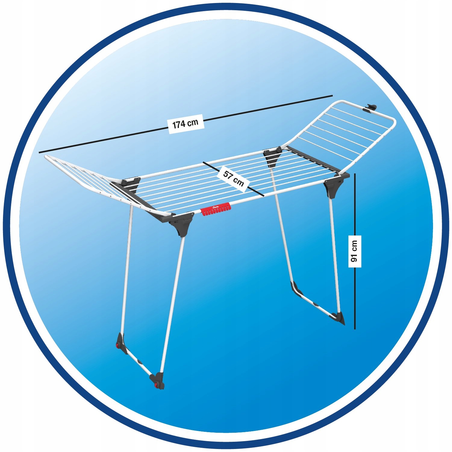 Vileda King – практичне рішення для полегшення сушіння. Дуже стійка складна сушарка. 20 метрів сушильної поверхні дозволяють розмістити до двох повних завантажень білизни. Завдяки товстим алюмінієвим дротам він запобігає утворенню складок на одязі, скорочуючи процес прасування.