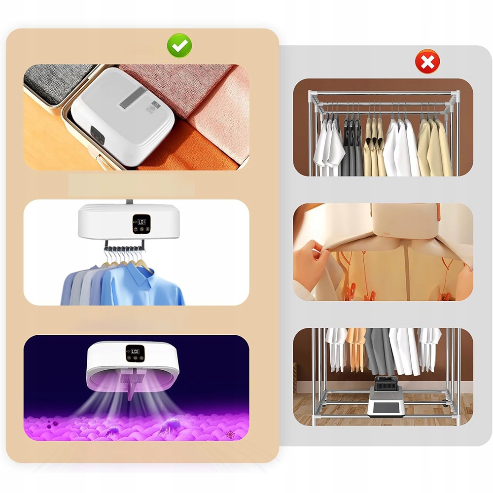 ♨- приймає структуру хвильової кронштейна, щоб розділити кожен шматок одягу для ефективного висихання. Інтелектуальна функція вимірювання часу 1-8 годин і автоматично вимикає джерело живлення через час.