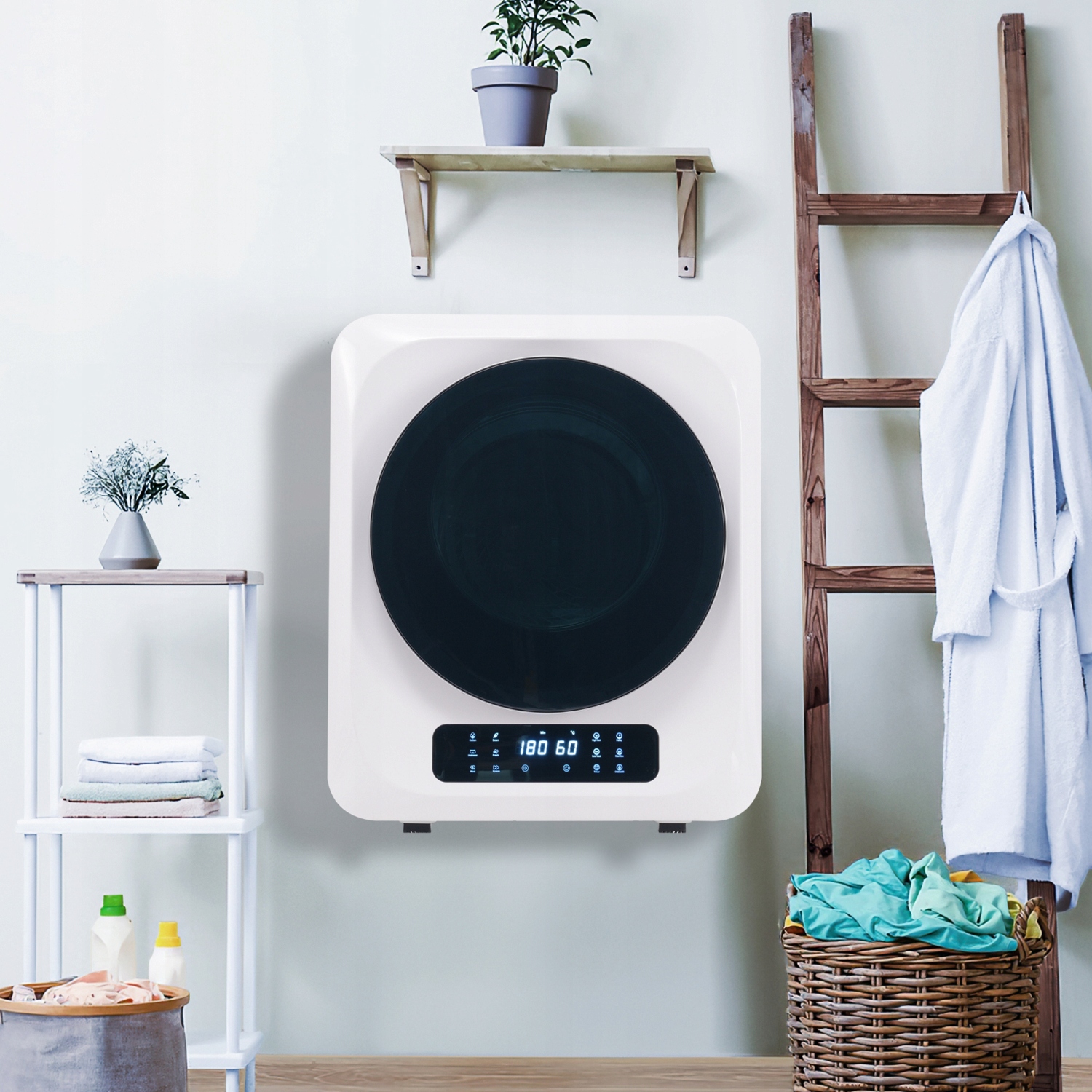 Дощ чи хмарно? Смог у повітрі? Не хвилюйтеся, з нашою компактною підвісною сушаркою вам більше ніколи не доведеться турбуватися про смог чи дощові дні. Завдяки ідеальній програмі та чіткому світлодіодному дисплею, який легко читається, ви можете легко керувати сушильною машиною, знайти правильну програму для свого одягу та отримати найкращі результати сушіння. Крім того, цей продукт оснащений функцією дезінфекції синім ультрафіолетом, який ефективно видаляє бактерії з одягу. У той же час компактний дизайн і можливість кріплення на стіні дозволяють більш ефективно використовувати простір і уникнути необхідності нахилятися. Ця маленька і практична сушильна машина має місткість 4 кг, чого достатньо для сушіння 15-20 літніх речей, 4-5 осінніх або 2-3 зимових речей, що задовольняють щоденні потреби вашої родини.