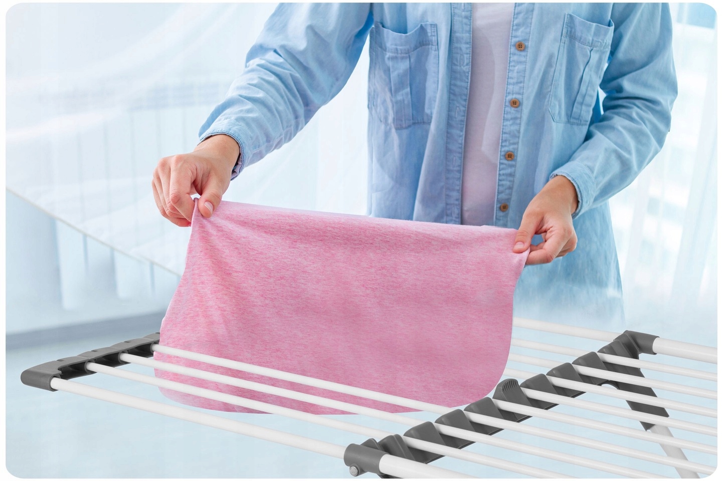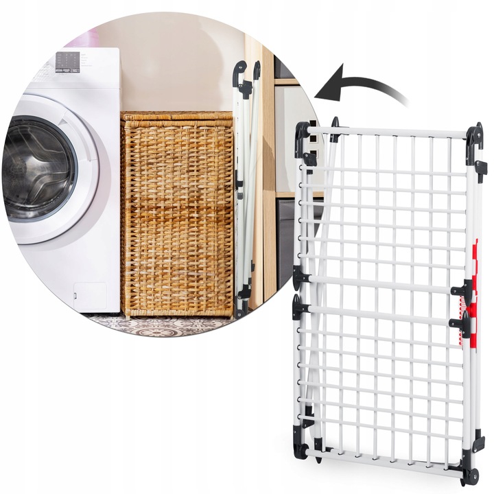 - ручки для сушіння нижньої білизни - сушарка на обох руках має спеціальні ручки нижньої білизни (наприклад, шкарпетки), завдяки якому ви заощете місце Сухе миття. База оснащена колесами, що полегшує переміщення елемента в будь -якому місці.