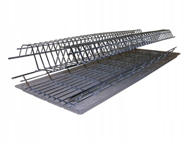 сушарка, виготовлена з хромованого дроту, забезпечуючи високу антикорозійну захист та міцність поверхні. сушарка, призначена для монтажу в шафі із зовнішньою довжиною 80 см і мінімальною глибиною 25 см. Лоток з пластику. Лоток безбарвний