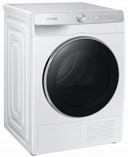 Інтелектуальна сушарка для білизни Samsung DV90T8240SH/S7 у білому виконанні з чорними дверцятами та потужністю сушіння 9 кг відноситься до класу енергоспоживання A+++. Він пропонує цілих 14 програм для різних типів прання, включаючи швидку програму та програму гігієни. Потужне сушіння за допомогою 3-х датчиків OptimalDry. Можливість управління через Wi-Fi і додаток SmartThings. Барабан з внутрішнім освітленням. Він також має захист від зминання, повітряне миття та захист від дітей. Оснащений цифровим інверторним двигуном з рівнем шуму 62 дБ aa і фільтром 2-в-1 для легкого обслуговування. Можливість відкриття дверей в обидві сторони.