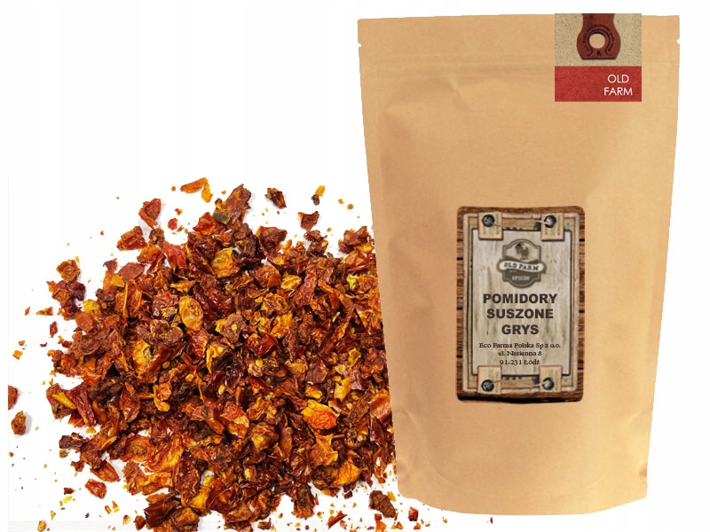 У пропозиції ми маємо різні фракції фрагментації, іноді продукт може бути меншим, ніж на фотографії. (крупа) - це чудова альтернатива томатного пюре або свіжих помідорів, особливо взимку, коли ми маємо обмежений доступ до свіжих овочів. Висушені помідори утворюються із свіжих помідорів, вони піддаються процесу сушіння, завдяки якому ми можемо насолоджуватися смаком помідорів у будь -який час року. або томатний концентрат. Навіть на кухні широко використовується невелика кількість, додана до ваших страв. Вони чудово підходять для італійської кухні як доповнення до соусів, піци, спагетті, лазаньї та брускетти. Але також на кожній кухні вони збагачуватимуть смак страв: бігу або зцілення. Ви можете використовувати їх для приправних супів, соусів, салатів або м'яса. Вони також збагачуватимуть сандвіч або спалахи.