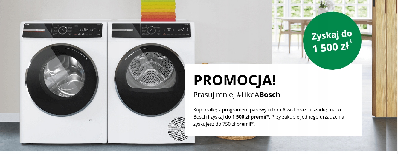 *Купуйте відповідні пристрої Bosch, залишайте відгук і отримуйте бонус. Акція діє з 5 вересня 2023 року до 30 листопада 2023 року або до вичерпання бонусного пулу. Розмір бонусу залежить від моделі придбаних пристроїв. Кінцевий термін подання заявок: 30 грудня 2023 р. Правила, деталі та моделі пристроїв, на які поширюється акція, доступні на сайті www.bosch-home.pl. Бонус буде виплачений організатором акції: BSH Sprzęt Gospodarstwa Domowego Sp. z o. o.
