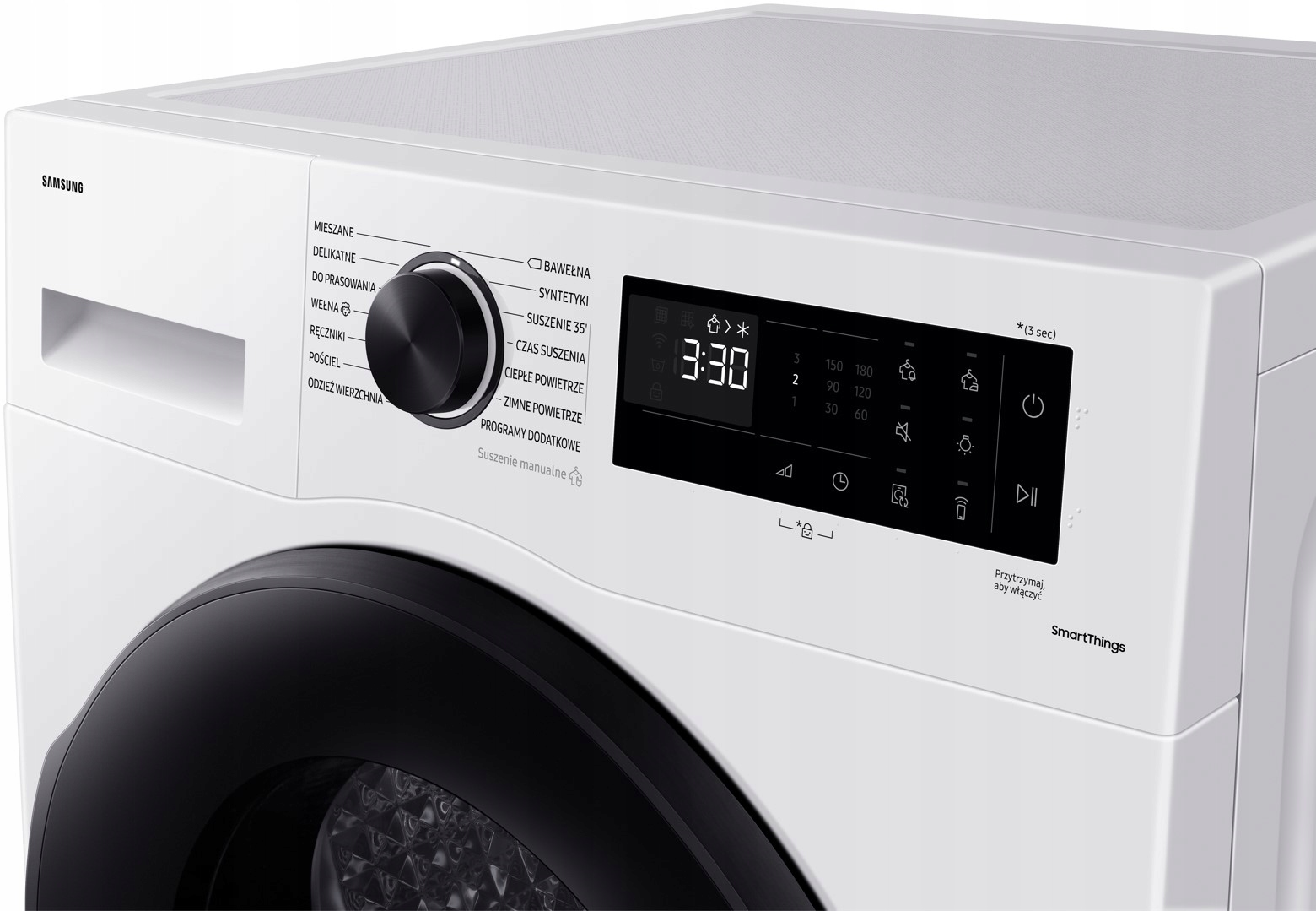 Optimal Dry - розумне налаштування параметрів сушіння. Інноваційний фільтр 2 в 1 - проста експлуатація та обслуговування. 35' Програма сушіння - швидке та зручне сушіння завантажень до 1 кг. SmartThings Energy - відстежуйте та керуйте енергоспоживанням своїх пристроїв для економії. Додаток SmartThings. Запустіть програму сушіння з будь-якого місця за допомогою телефону. Естетичне підсвічування барабана - перевірте стан прання. Цифровий інверторний двигун.