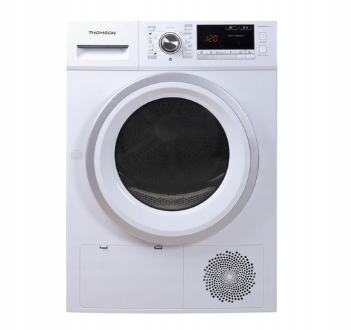 Сушильна машина THOMSON HP8A+++ ємністю 8 кг є одним із найекономніших пристроїв у своїй категорії завдяки тепловому насосу та, про що свідчить клас енергоспоживання A+++. Має 16 спеціальних програм і барабан об'ємом 125 літрів, в який можна помістити простирадло і ковдру.