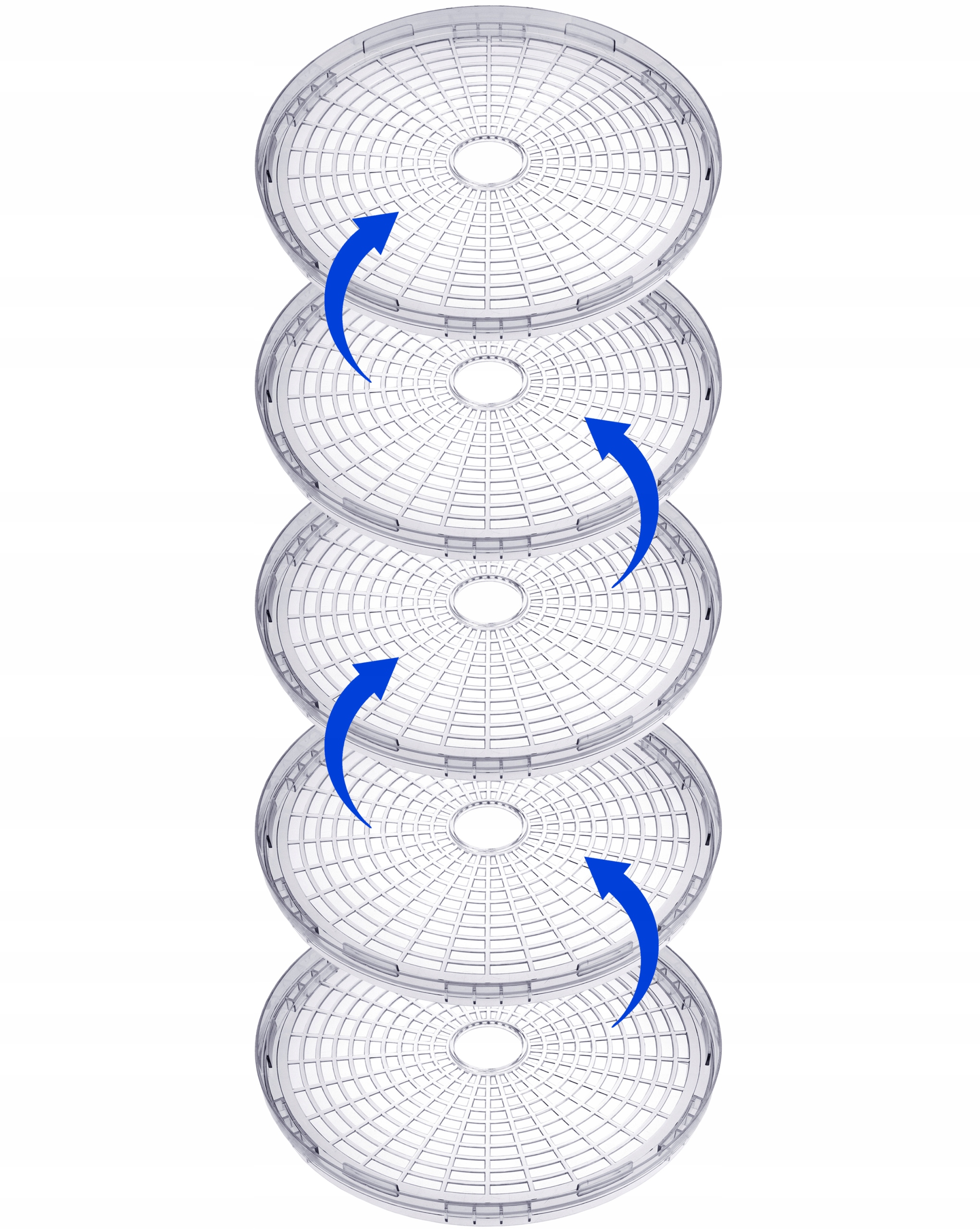 Пристрій розроблено для отримання найкращої можливої циркуляції повітря – підвищення тепла, викликаного різницею температур окремих повітряних шарів, що означає, що кожен фрукт чи трава буде належним чиномсушений.