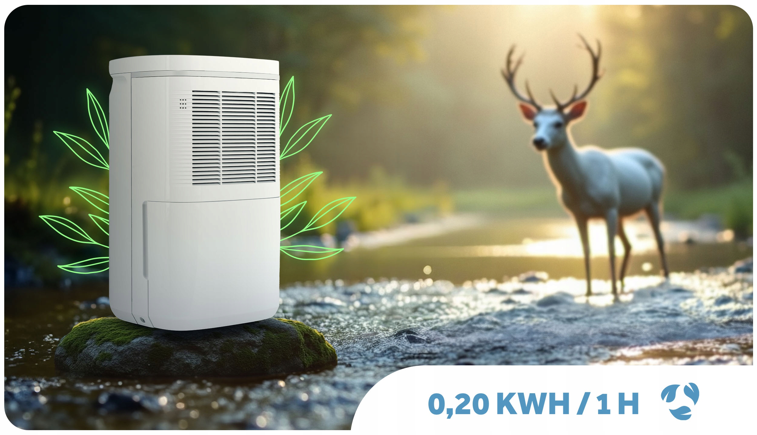 У нашому осушувачі ми використовували холодоагент R290, який не руйнує озоновий шар (низький потенціал ODP) і має дуже низький потенціал глобального потепління (GWP). За показниками ефективності охолодження не поступається старим холодоагентам з групи HCF, напр. R134A, R404A, але він набагато екологічніший. Наш пристрій відповідає всім польським і європейським стандартам, а також відповідає директивам ЄС LVD і EMC.