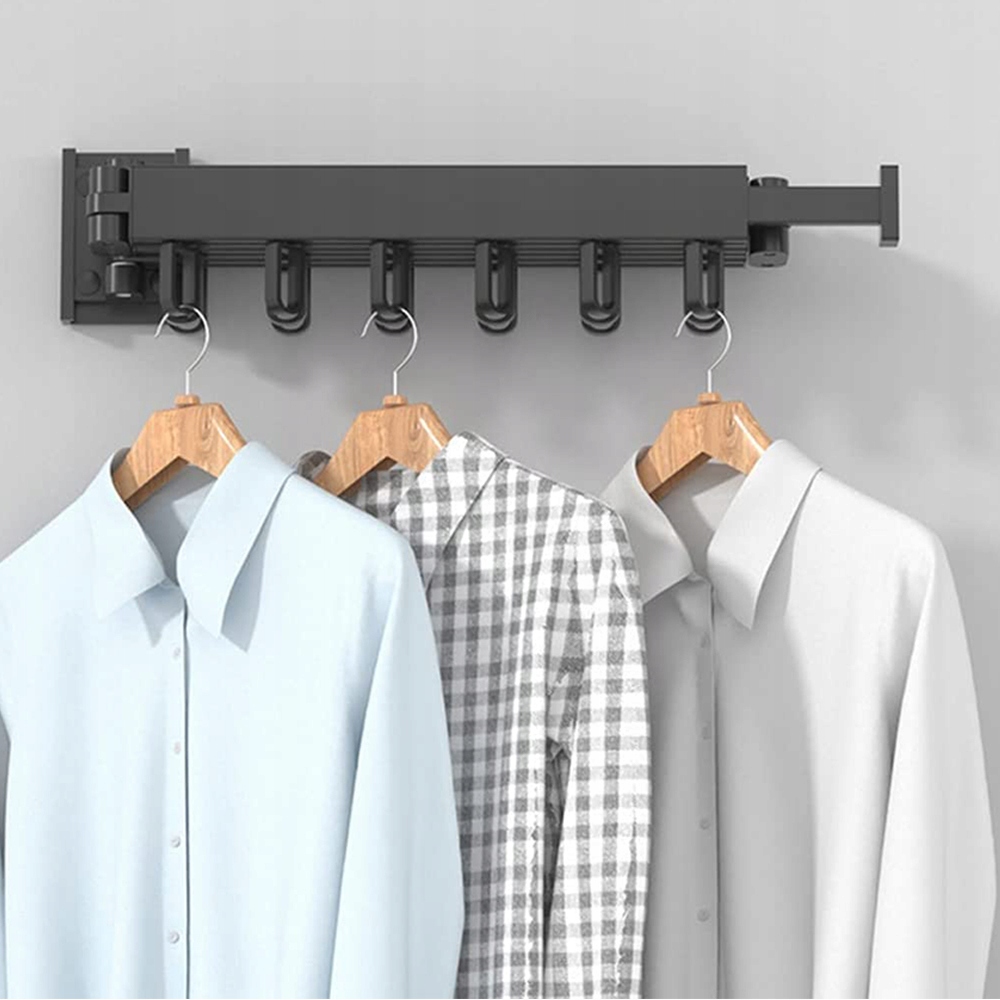 - Розмір: 3 складені секції, кожна секція 30 см, подовження на кінці вішалки 24 см, загальна довжина 120 см