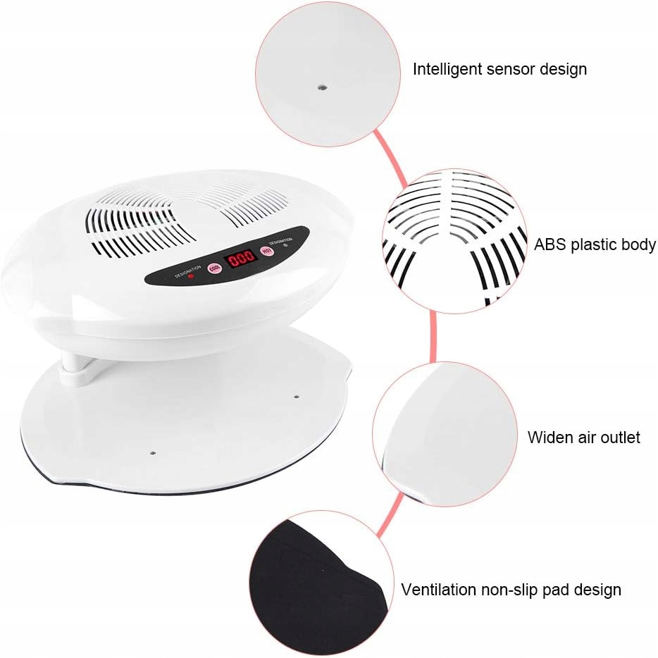 - Світлодіодний дизайн: РК-дисплей, зручне читання, погіршене світлодіодне декоративне освітлення, яке може зменшити задуху під час роботи з цвяхами , швидка швидкість висихання, постійна потужність лампи, задовільна продуктивність і тривалий термін служби 50 000 годин.