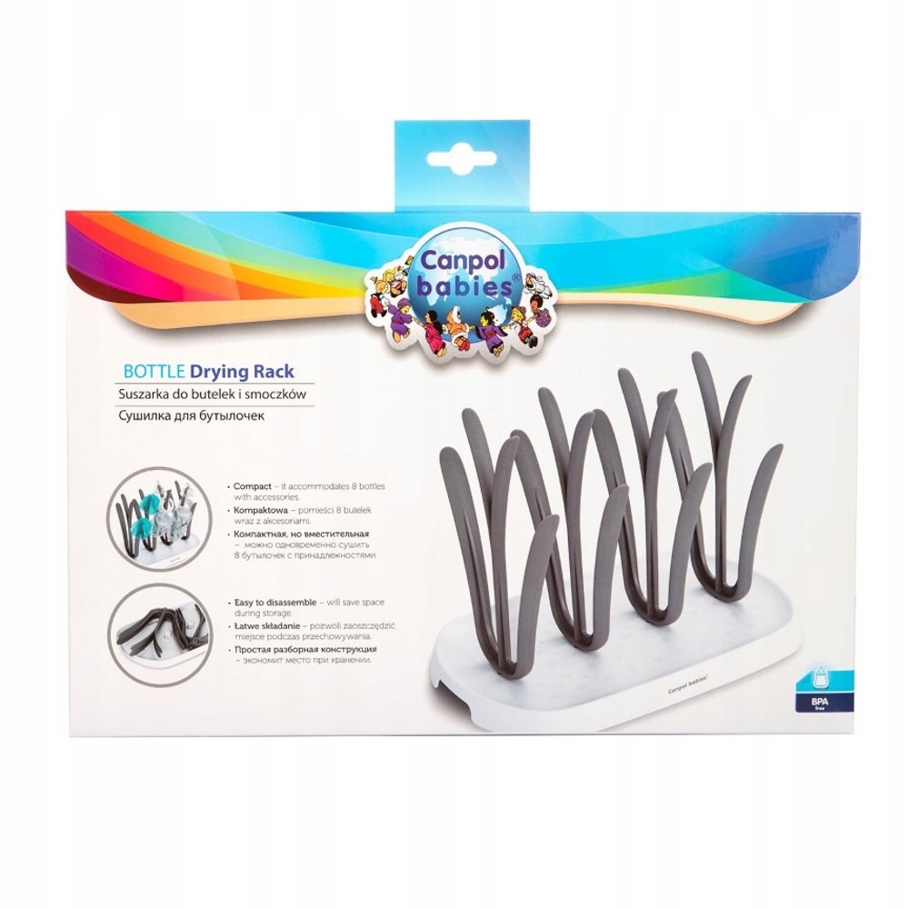 - Сушарка Canpol babies розроблена для розміщення до 8 пляшечок із аксесуарами.