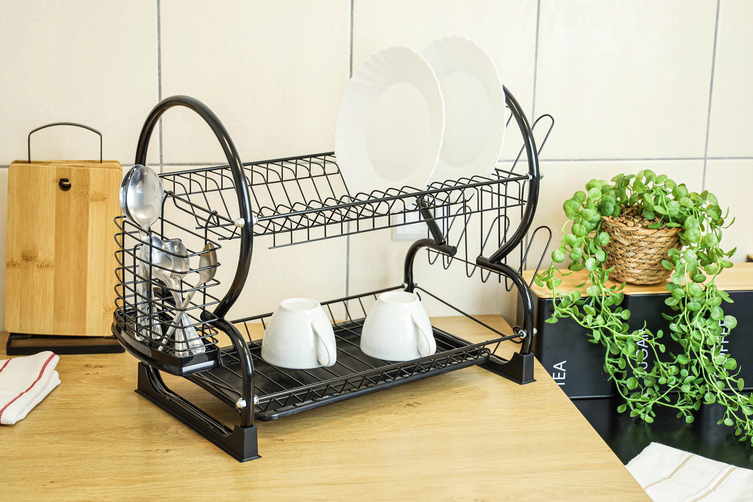 ✅ Ефективне використання простору - дворівнева сушарка для посуду з місцем для тарілок, чашок, склянок і столових приладів оптимізує простір у кухня.