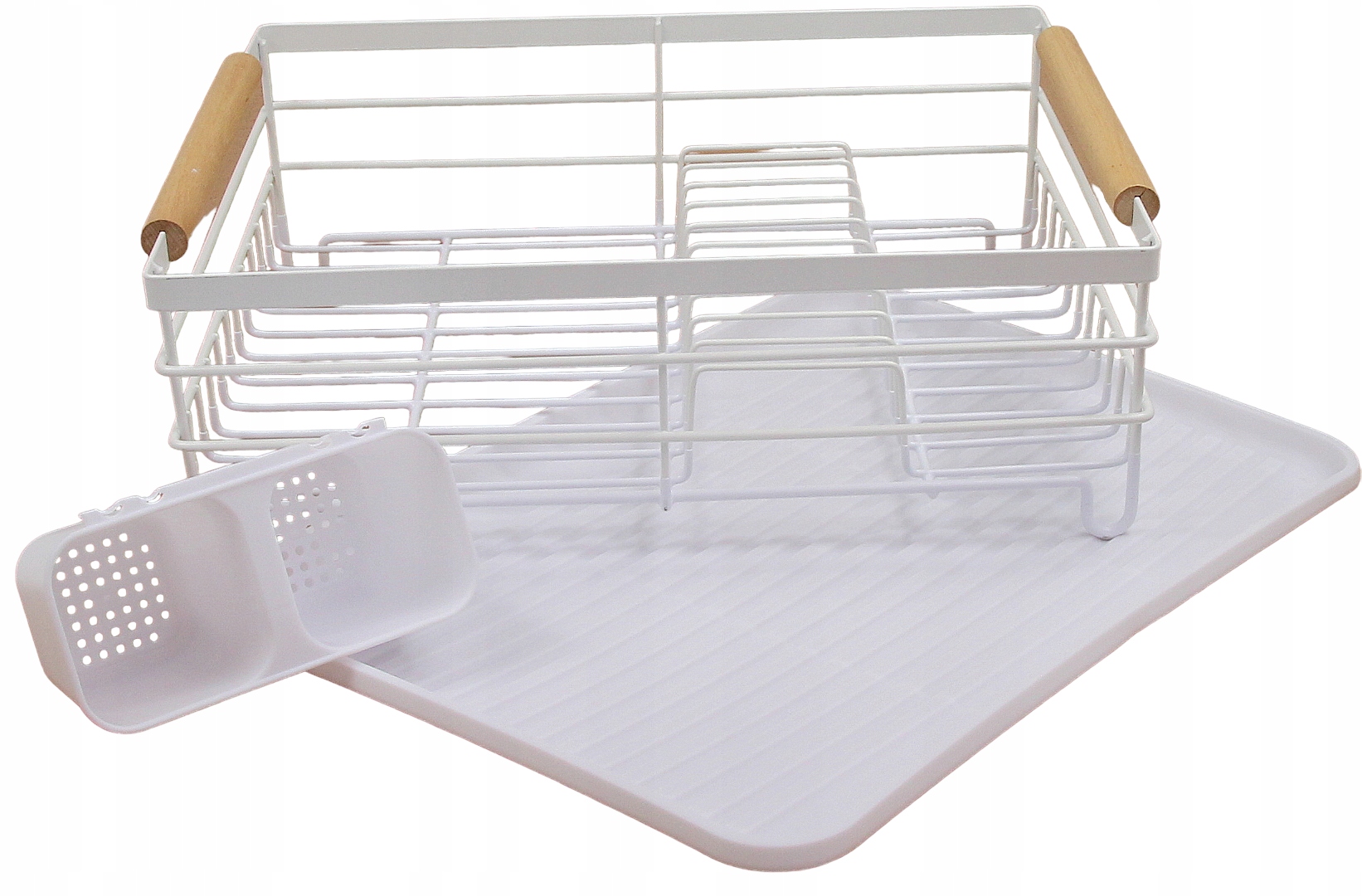 ✅Сушка для посуду характеризується дуже високою якістю та міцною та металевою конструкцією. Смоляний піддон захищає стільницю від намокання. У комплект також входить пластикова двокамерна сушарка для столових приборів. Металева біла сушарка з дерев'яними ручками - елегантне рішення для будь-якої кухні.