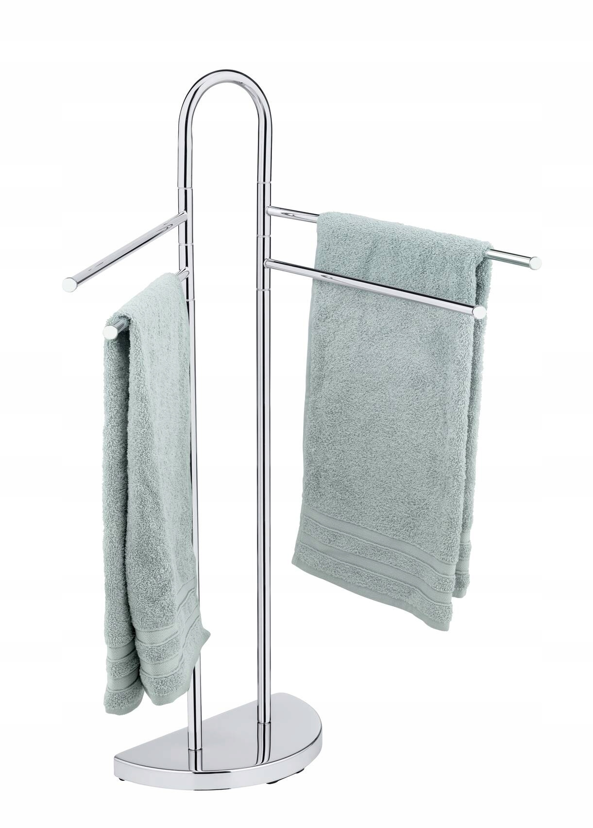Відокремлена вішалка з чотирма, рухомих рук допоможе зберегти порядок у ванній кімнаті та прискорити буріння рушників. Завдяки спеціальній напівкруглі -ступінці, її можна розмістити прямо біля стіни. Це заощадить цінне місце у ванній кімнаті до 50 % порівняно з звичайною стійкою на круглої бази. Сучасний і елегантний дизайн . буде справді естетичним доповненням до вашої ванної кімнати.