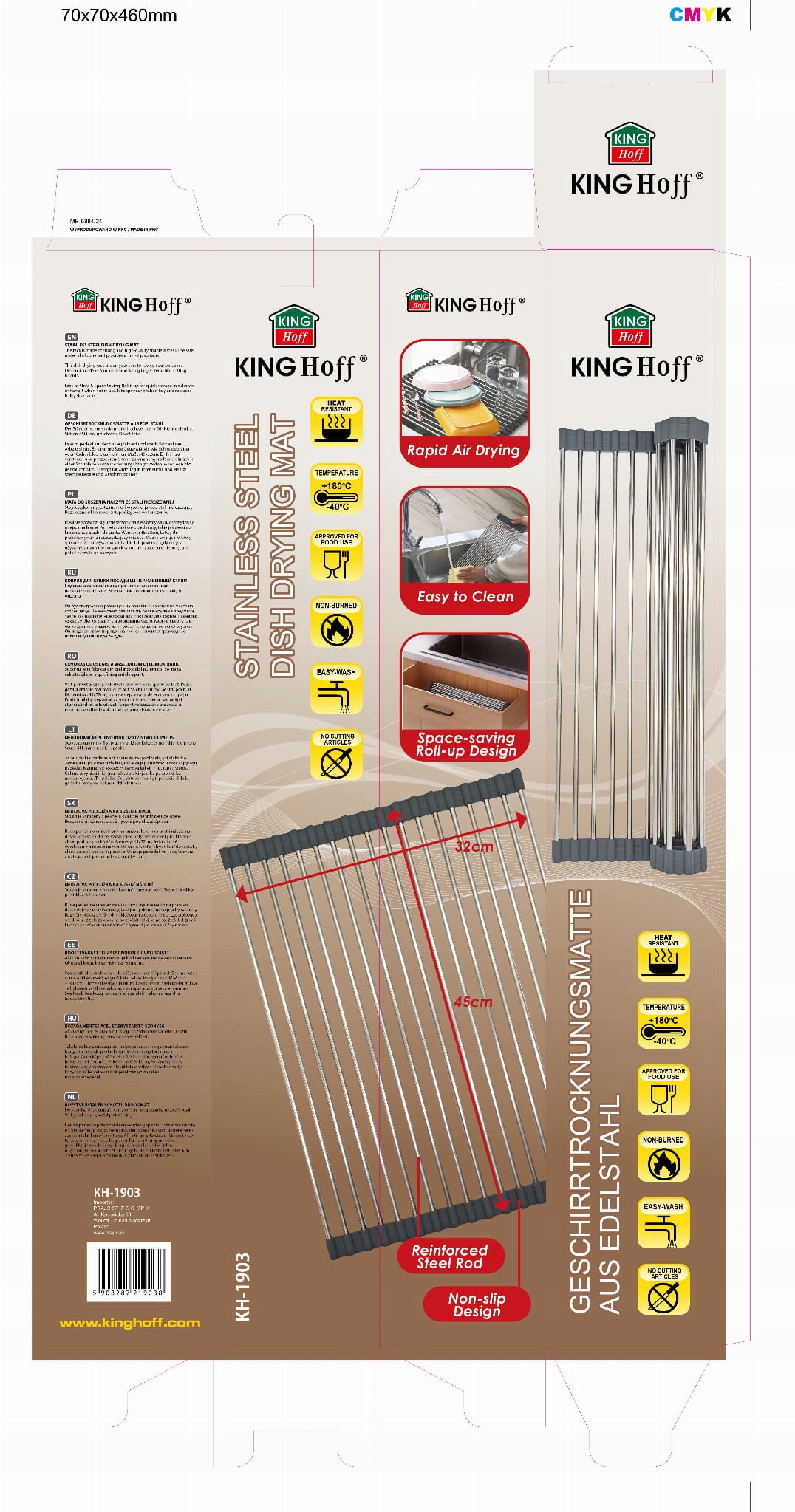 Втомилися від компактних сушильних машин? Відкрийте для себе сучасний килимок для сушіння посуду KINGHOFF KH-1903, виготовлений із міцної нержавіючої сталі з протиковзким силіконовим покриттям! Ідеальне поєднання функціональності та елегантного дизайну для вашої кухні.