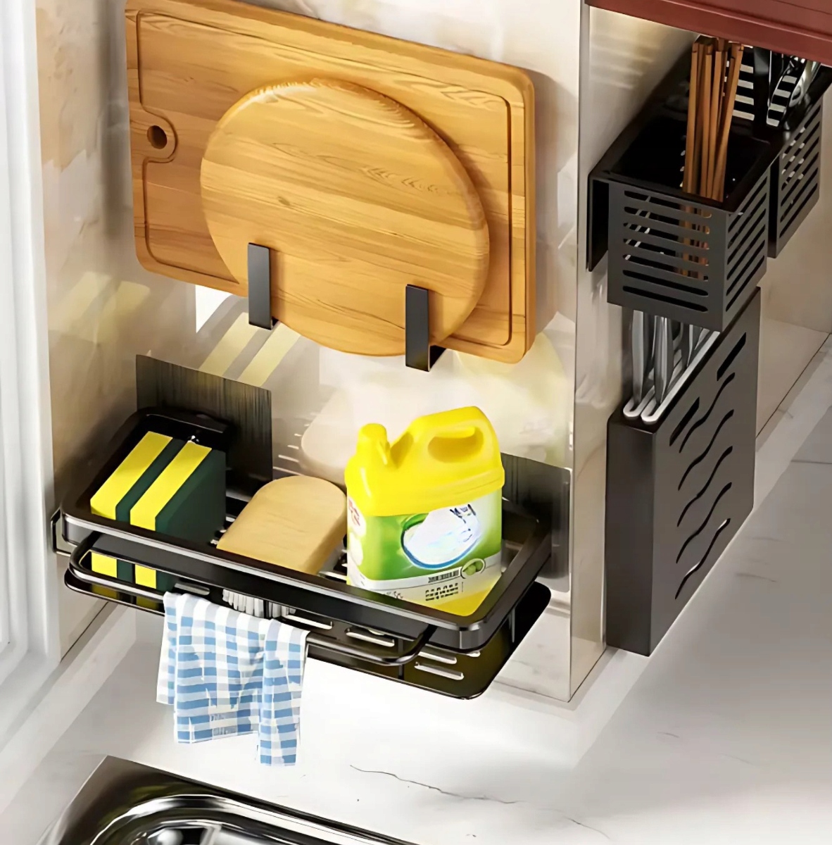 Ми представляємо суспендований злив для губки та рідини для миття посуду в елегантному чорному кольорі. Наш крапель є унікальним рішенням для людей, які цінують порядок та функціональність на кухні.