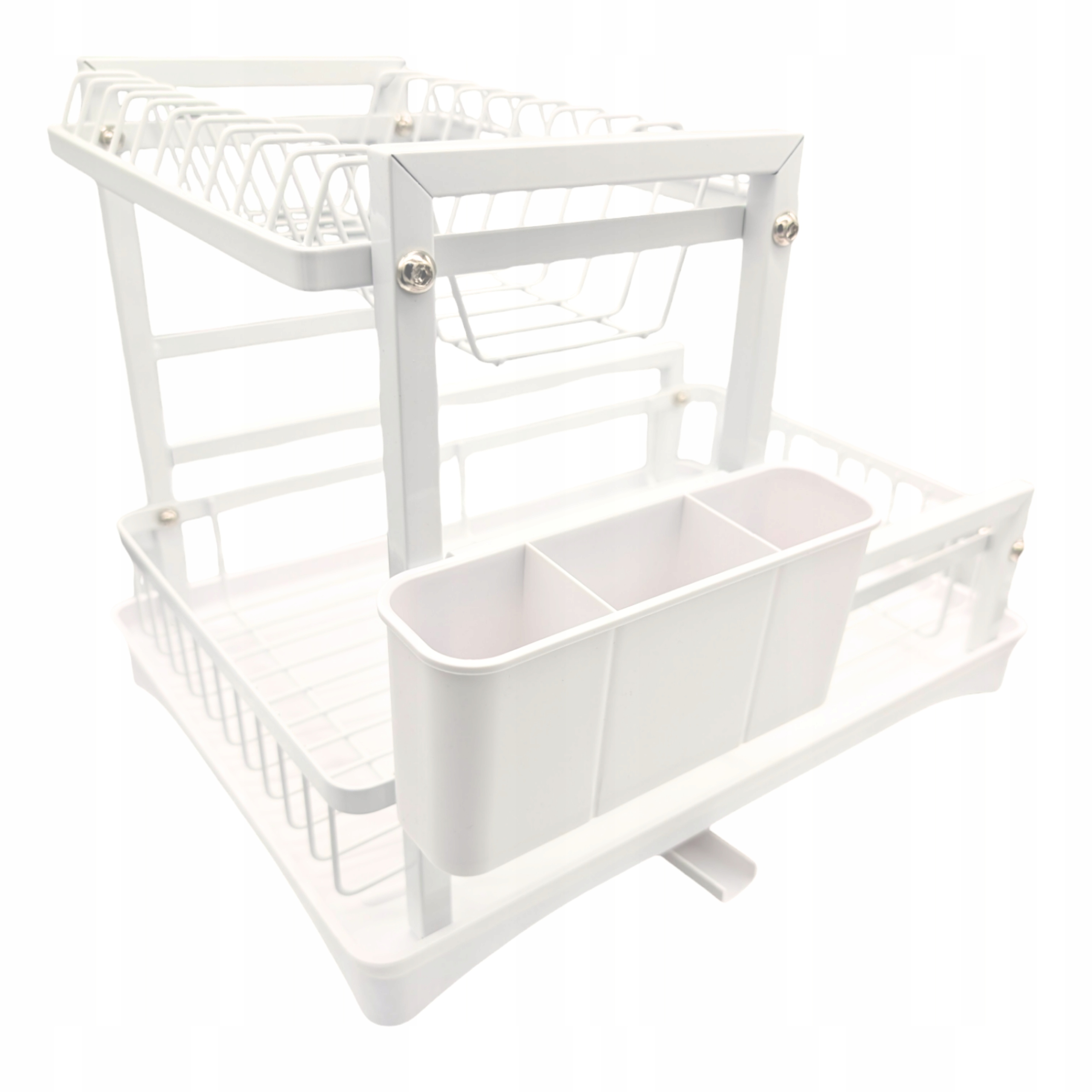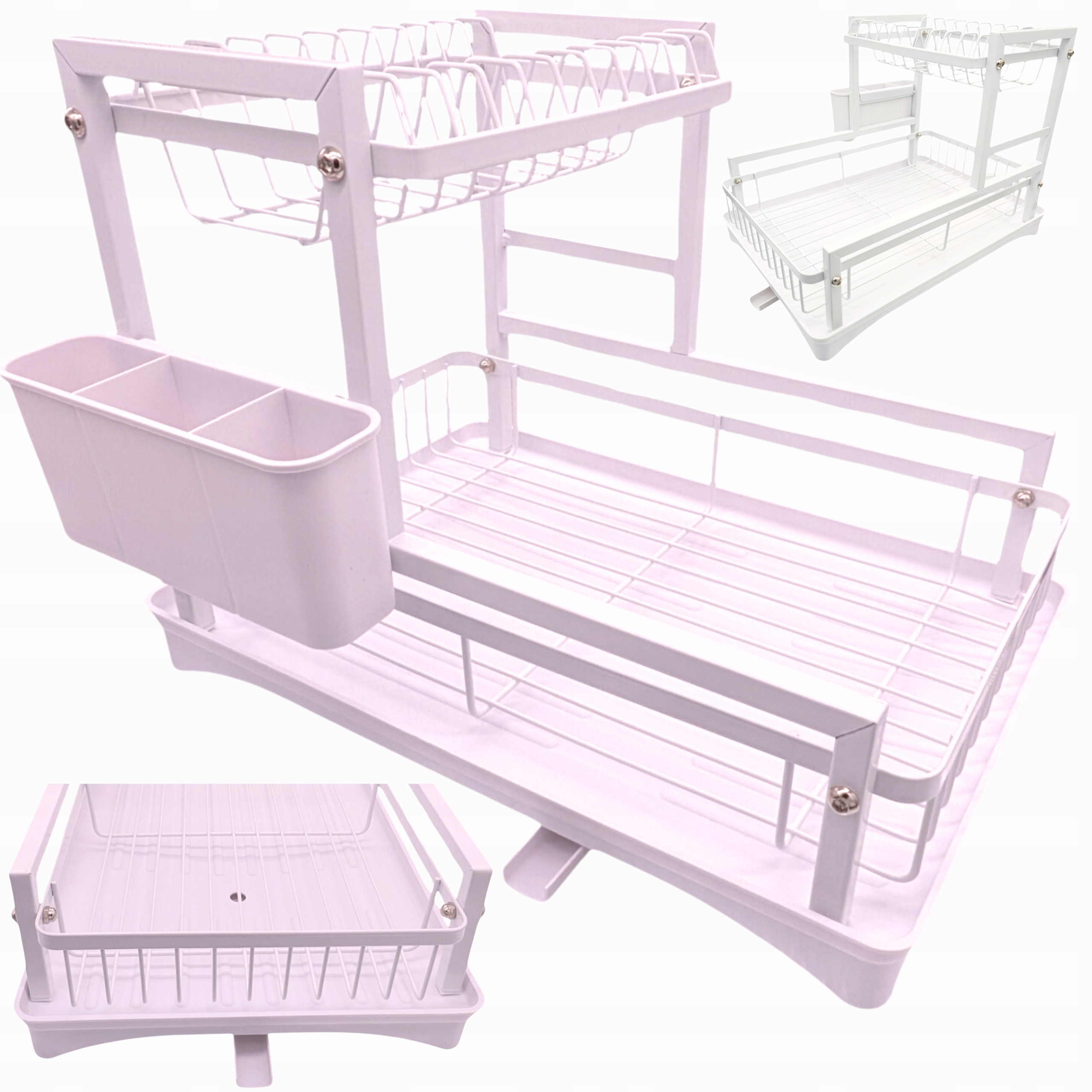 SUSZARKA DO NACZYŃ OCIEKACZ Z ODPŁYWEM DWA POZIOMY BIAŁA NA TALERZE STOJAK