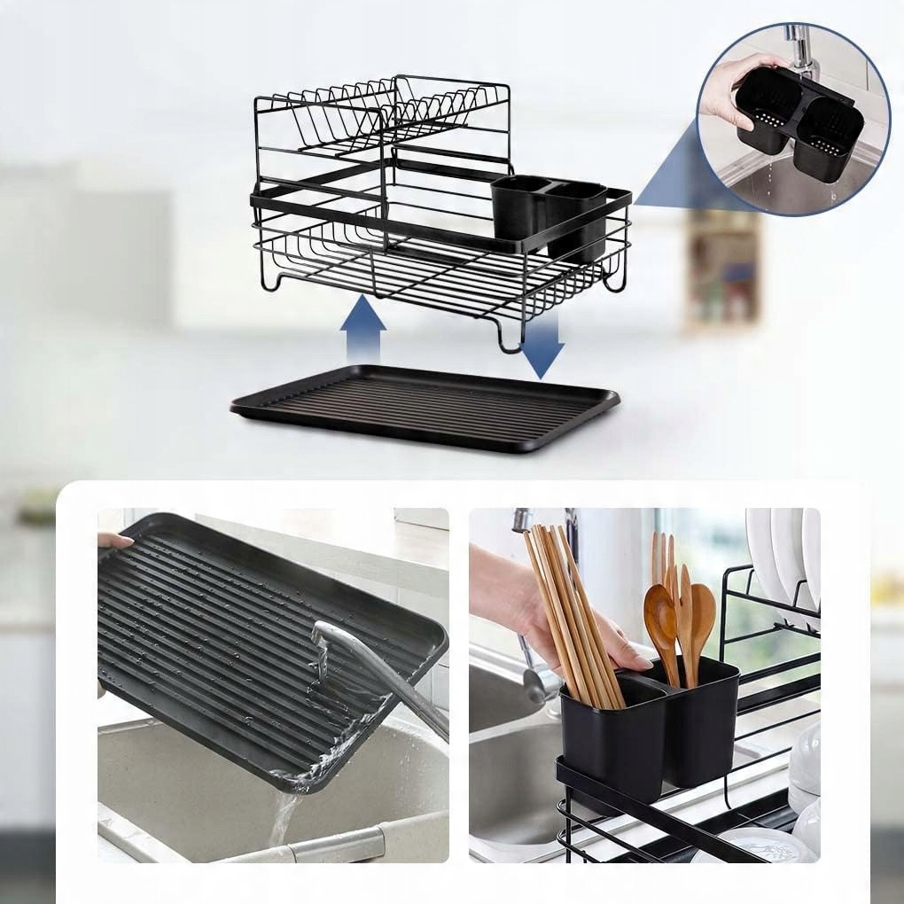 ▶️ Ось такий посуд сушарка - дворівневий дренаж, доступний у класичному чорному кольорі.
