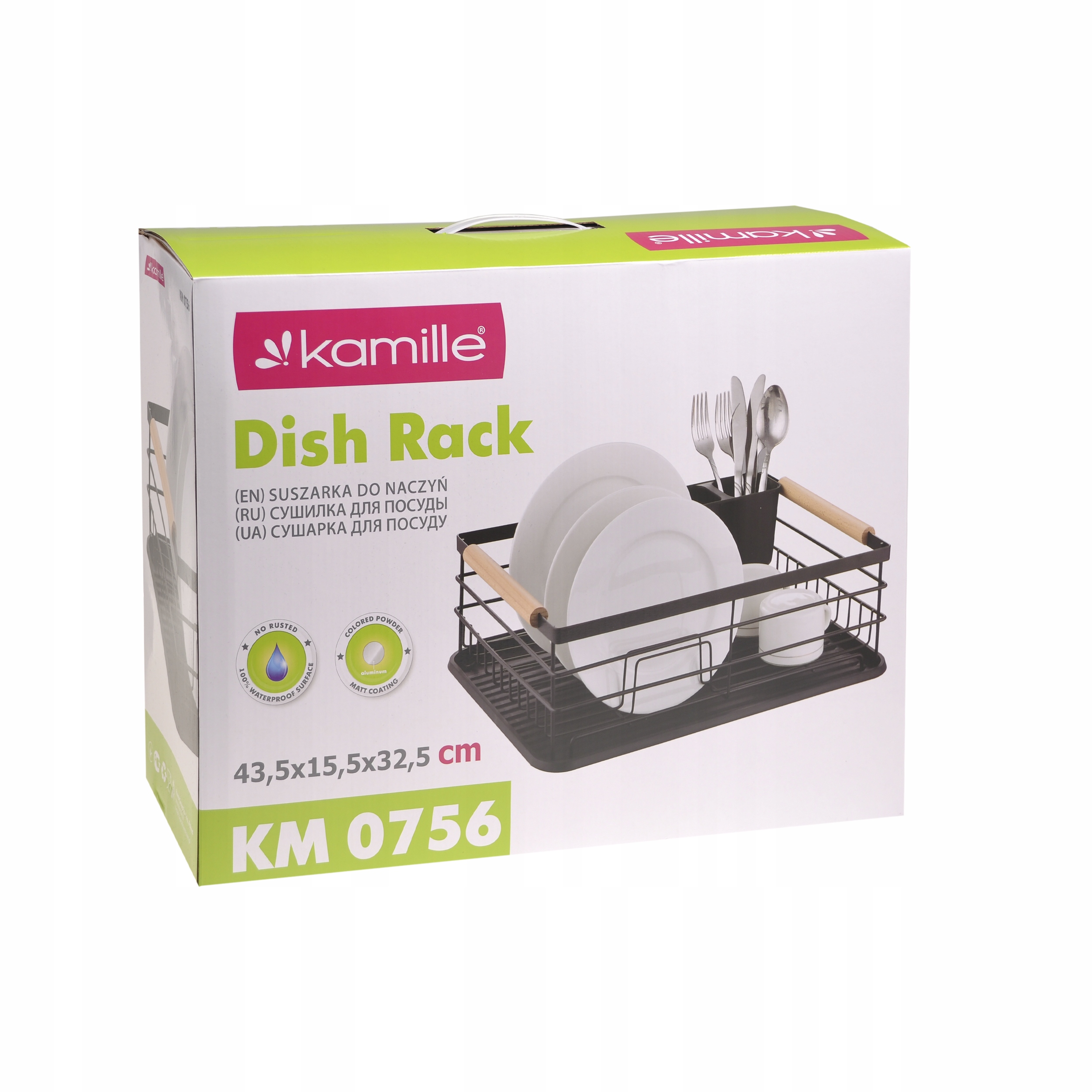 Сучасна сушарка Kamille полегшить висушування вимитих вручну столових приборів, чашок і тарілок і захистить кухонну стільницю. У набір також входить ємність для столових приборів і піддон для крапельної води.