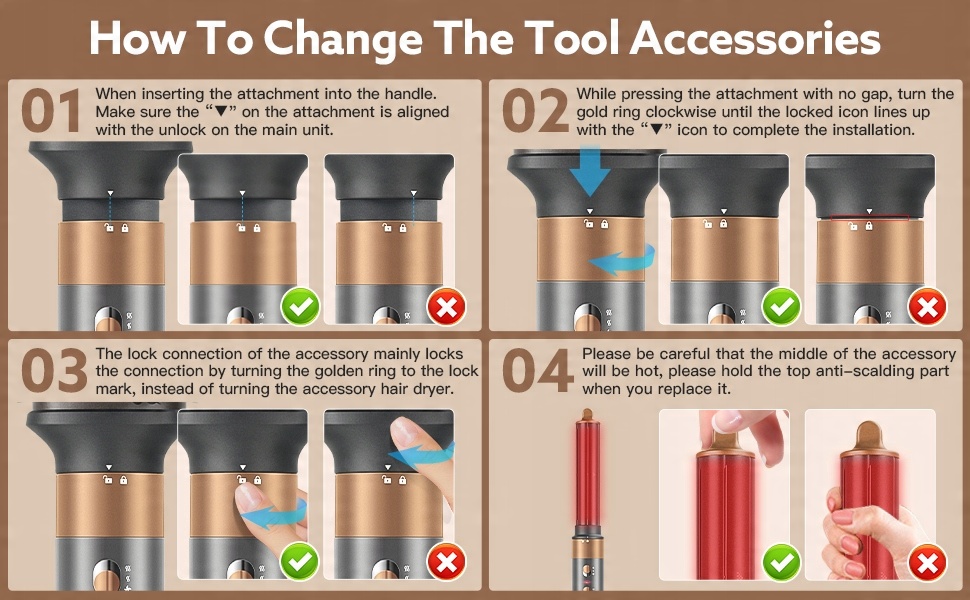 - [Високошвидкісний фен] - високошвидкісний безщітковий двигун зі швидкістю 110 000 обертів на хвилину та висока потужність 1400 Вт забезпечують сильний потік повітря, можуть дуже швидко висушити волосся, зберігаючи низьку температуру, забезпечуючи менше завивання. Фен-щітка оснащена 3 температурними режимами та 2 налаштуваннями швидкості вітру, адаптованими до різних типів волосся та ефектів укладання.