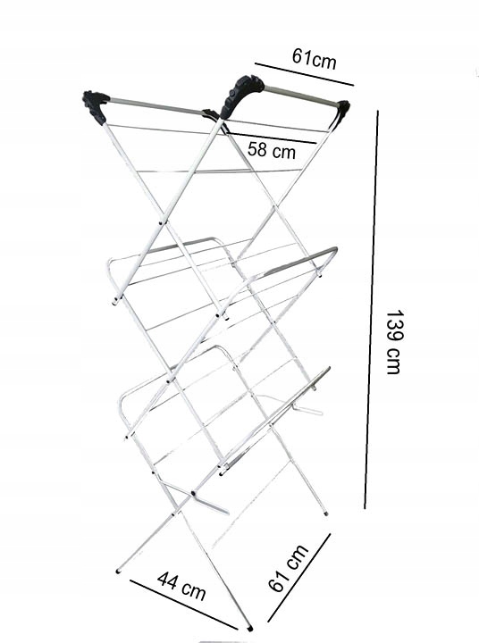 На відміну від класичних сушарок, вона має аж 3 рівні, з 6 складними кронштейнами. Сушильна машина забезпечує великий простір для розвішування білизни, не займаючи багато місця. вдома.