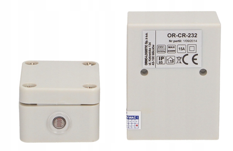 Пристрій використовується для автоматичного управління освітленням або інших електричних приймачів, зберігаючи електроенергію. Його завдання - увімкнути та відключити електричний ланцюг, коли інтенсивність освітлення опускається нижче встановленого рівня. Потенціометр для регулювання інтенсивності світла. Зовнішній зонд у герметичному корпусі, з'єднаному Ангіною PG7, з кабелем з довжиною максимуму. 15 м.