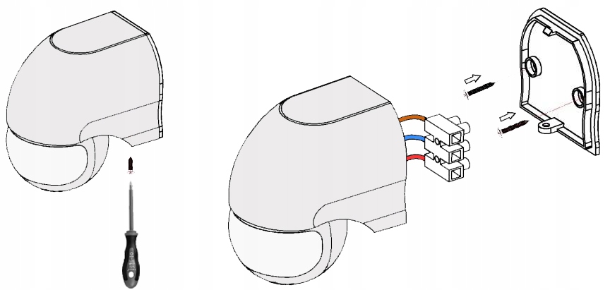 - Детектор руху з двома діапазоном регулювання: час роботи та інтенсивність освітлення,