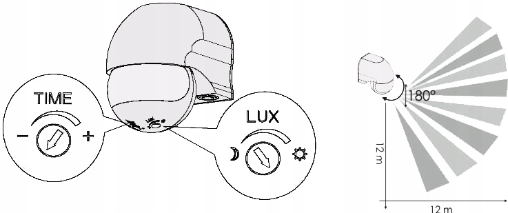 датчик руху з двома діапазоном регулювання: час роботи, інтенсивність освітлення?