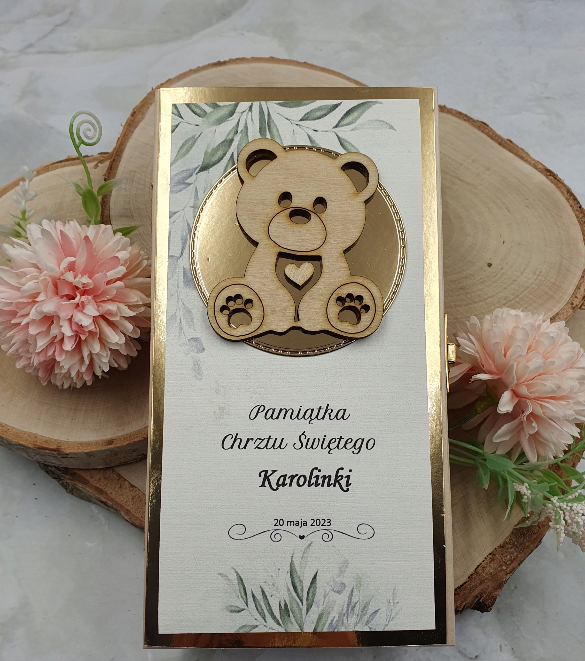 Сувенір хрещення- коробка, персоналізована для готівкових плюшевих ведмедів