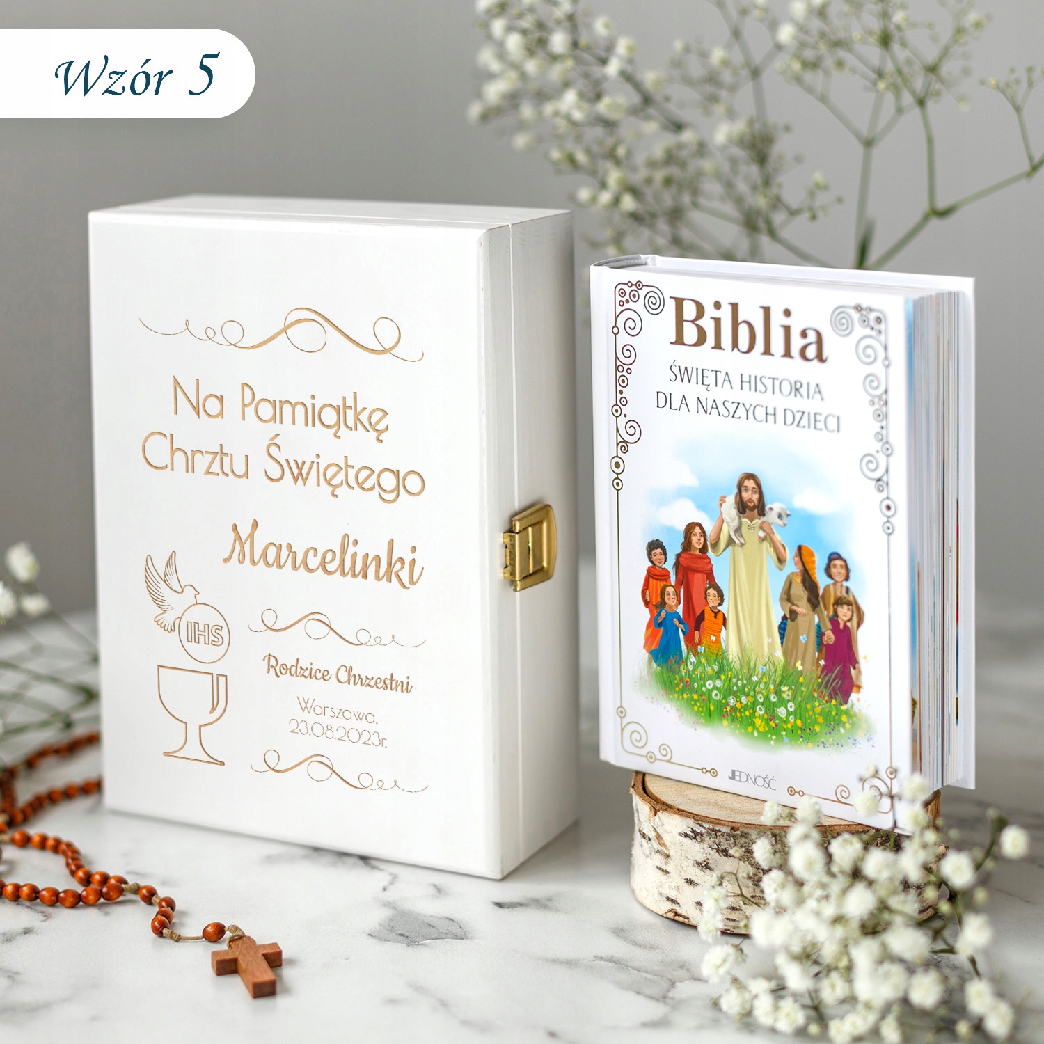 Делікатний і класичний вигляд Біблії, і дерев’яної коробки робить подарунок ідеально відповідати кожній релігійній церемонії - як для хлопчика, так і для дівчинки.