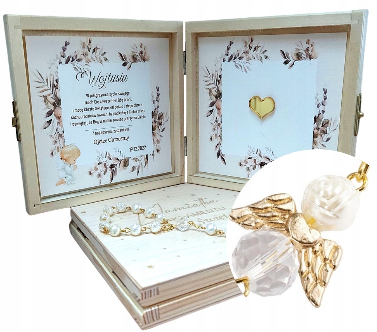 Сувенір Хрещення коробка із ЗОЛОТИМ РОЗАРІЄМ