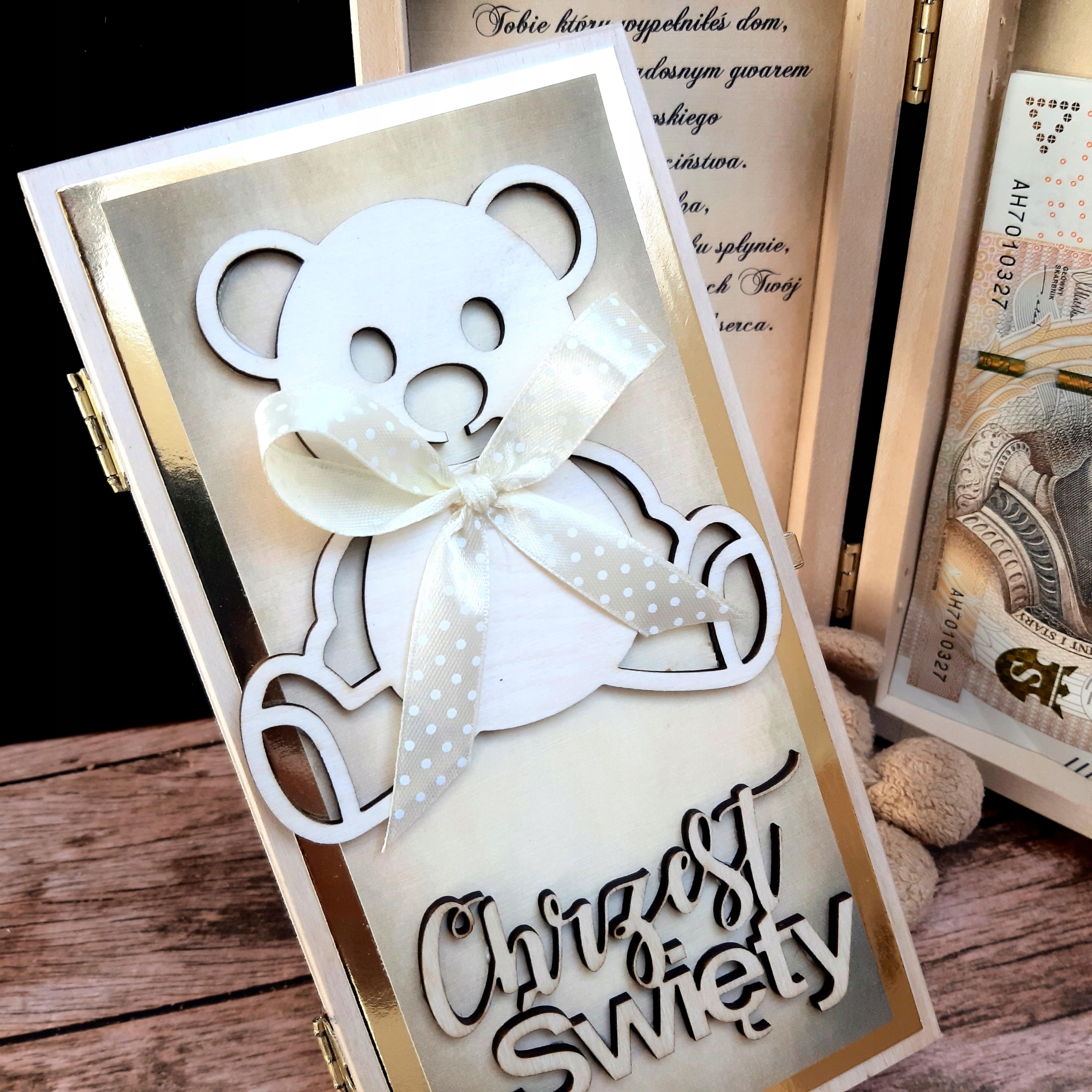 Pamiątka Chrztu pudełko z miejscem na gotówkę MIŚ