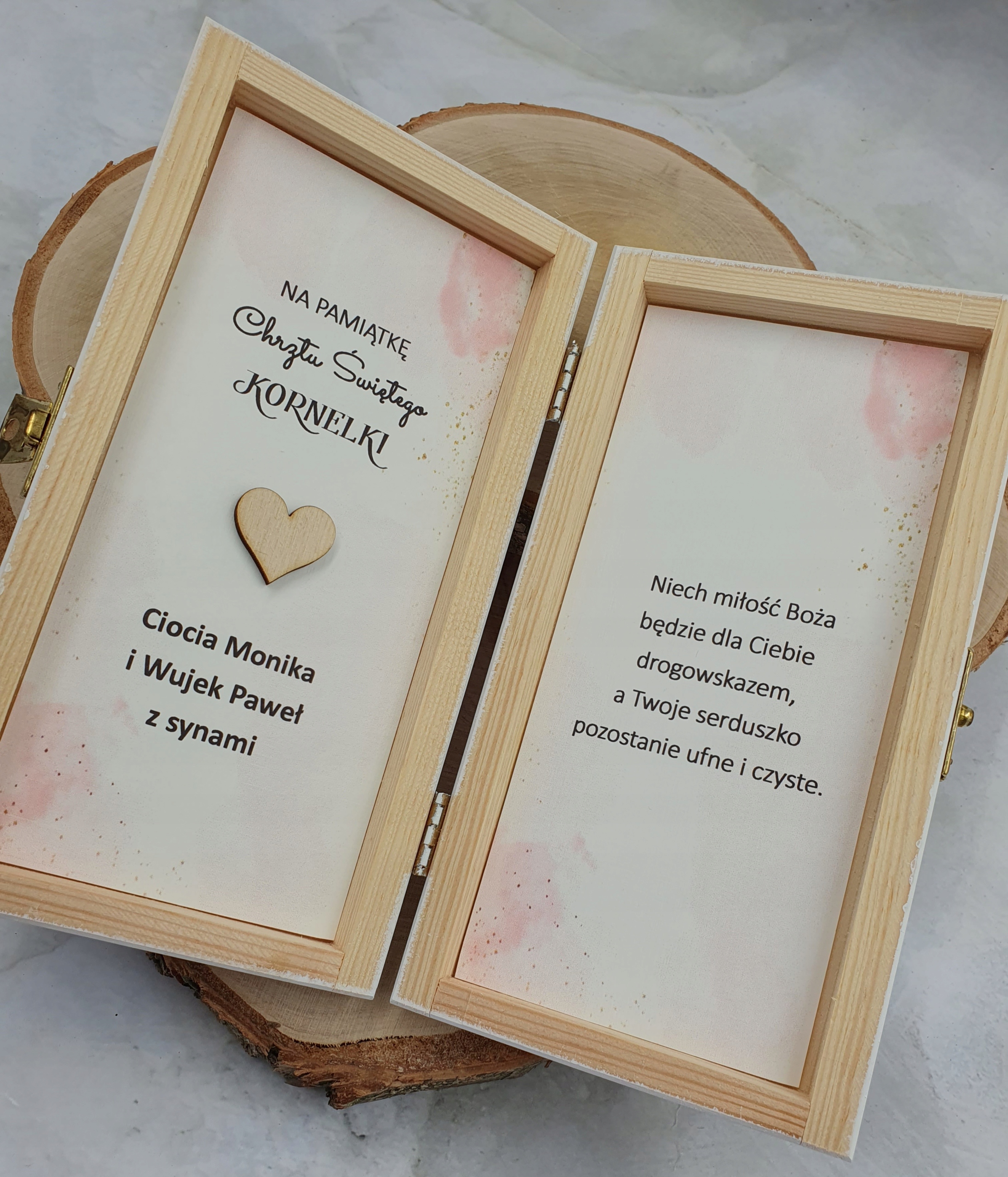 Коробка містить ім'я дитини, а також люди, які дарують подарунок. Ви також можете вибрати багато побажань. Ви можете надіслати своє.