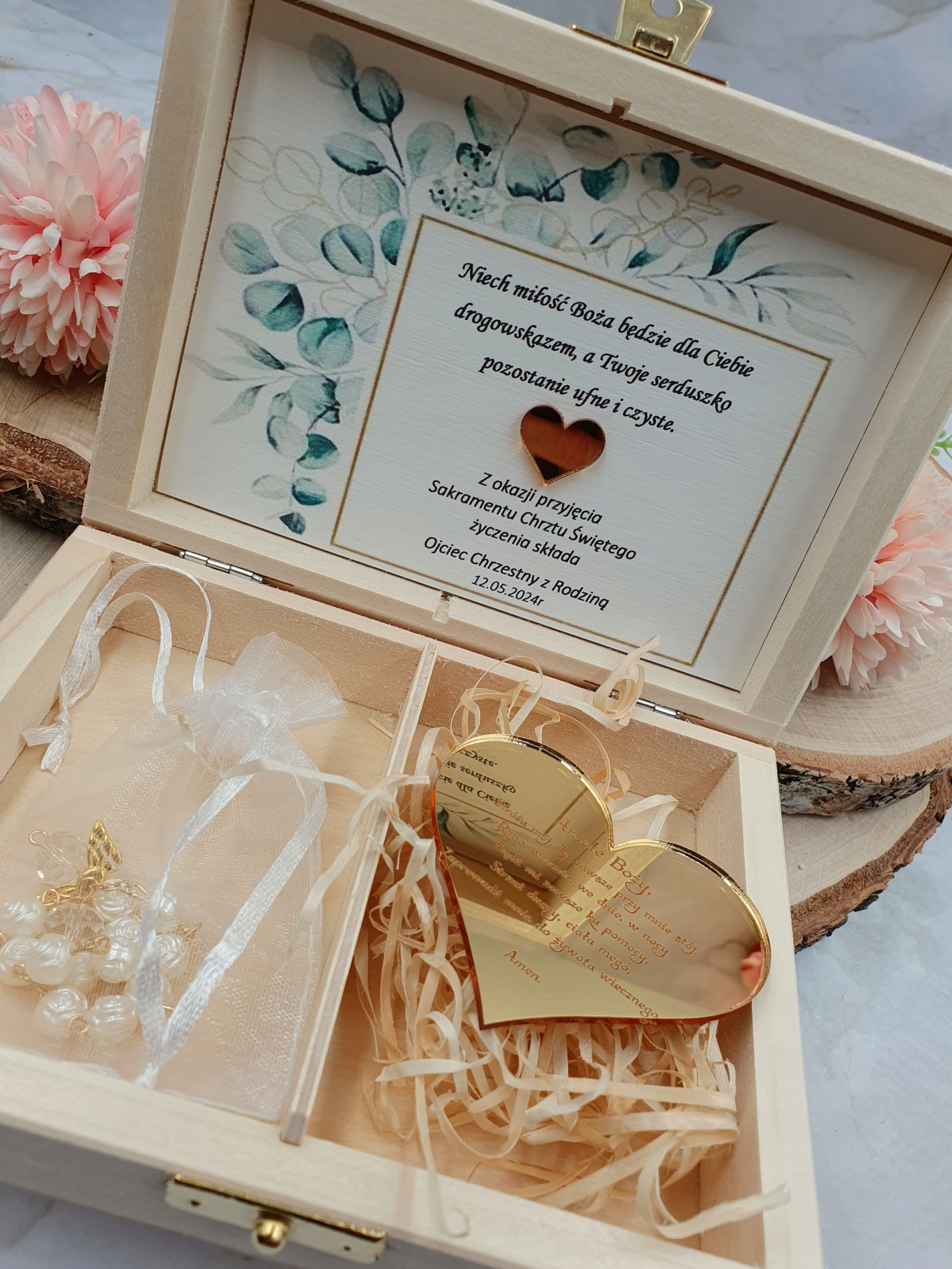 Сувенір хрещення святого перерви, коробка. Розарій і серце