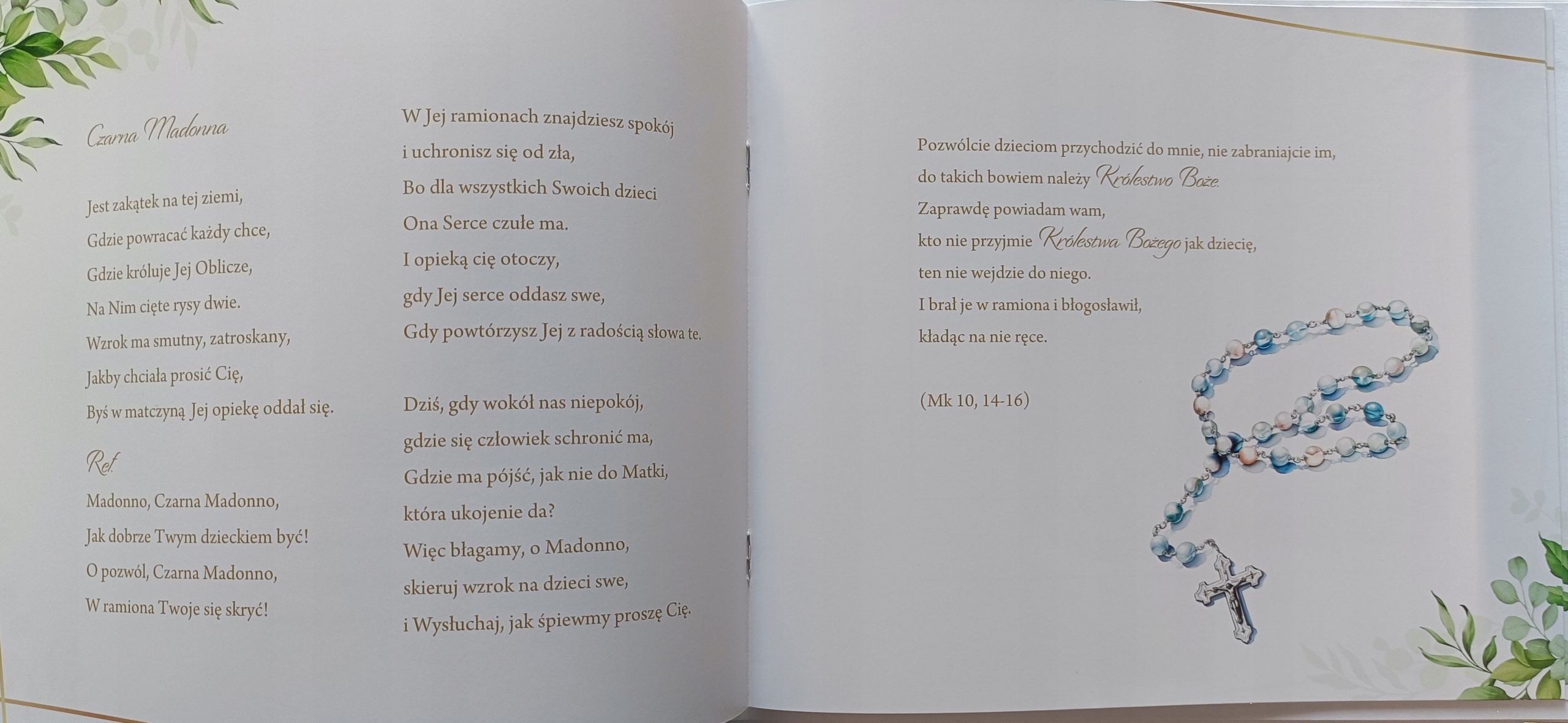 підтримується в білому кольорі, містить цитати, молитви, літургійні тексти.