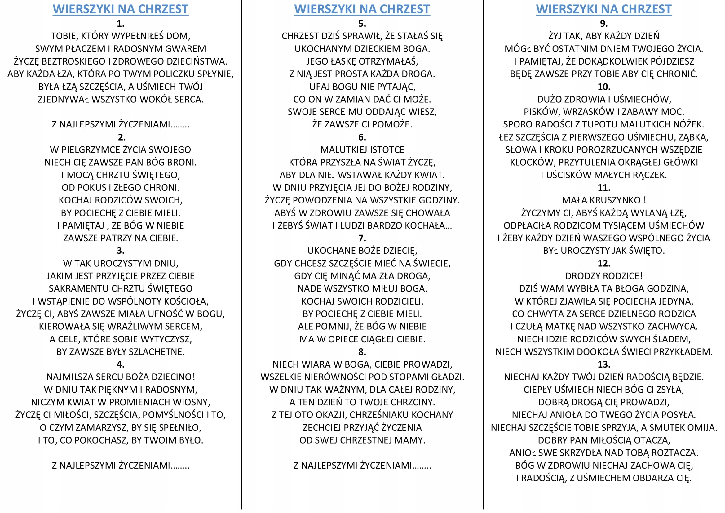 - індивідуальні побажання, вірші на вибір