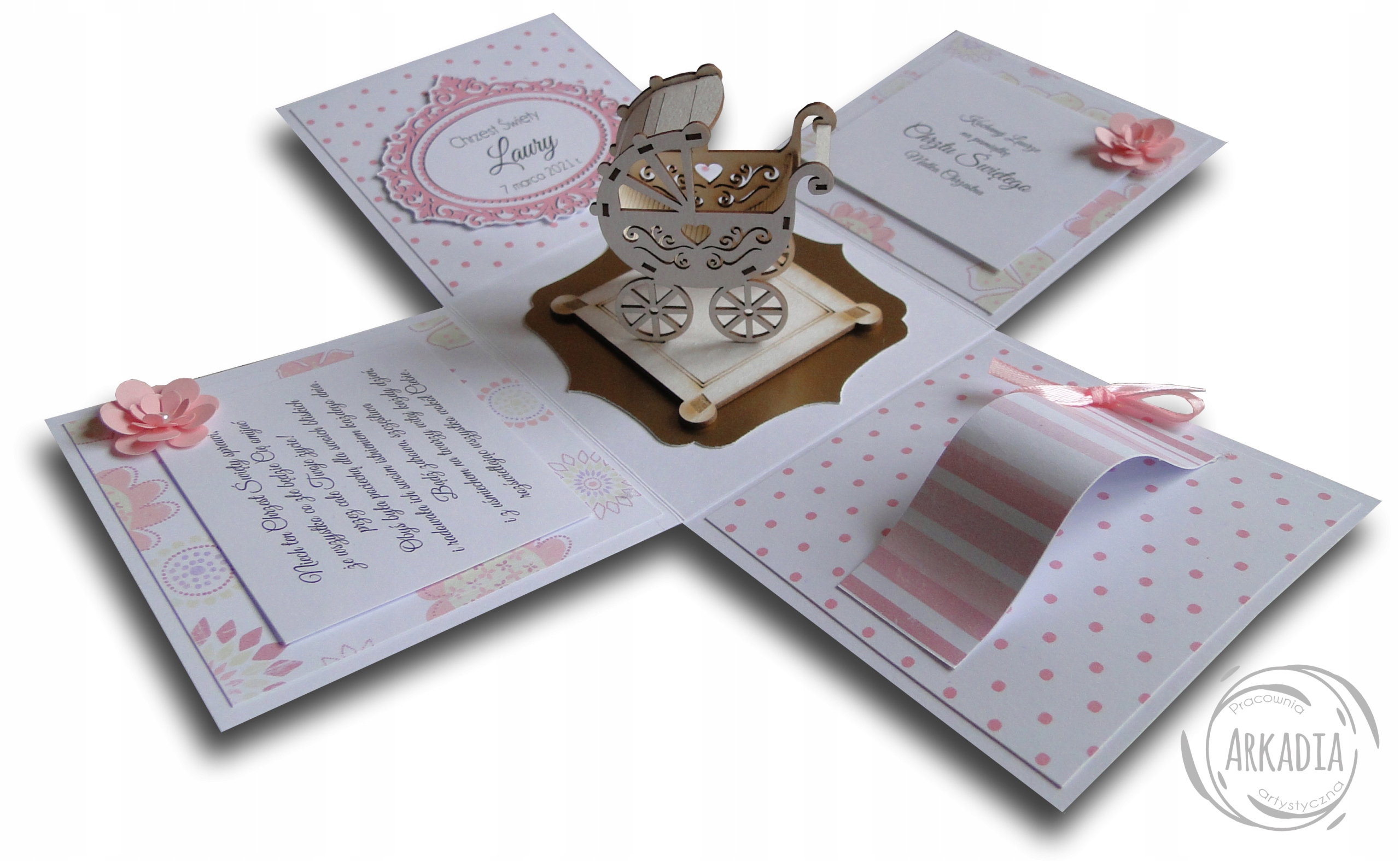 Сувенір на хрещення EXPLODING BOX 3D card рожевий