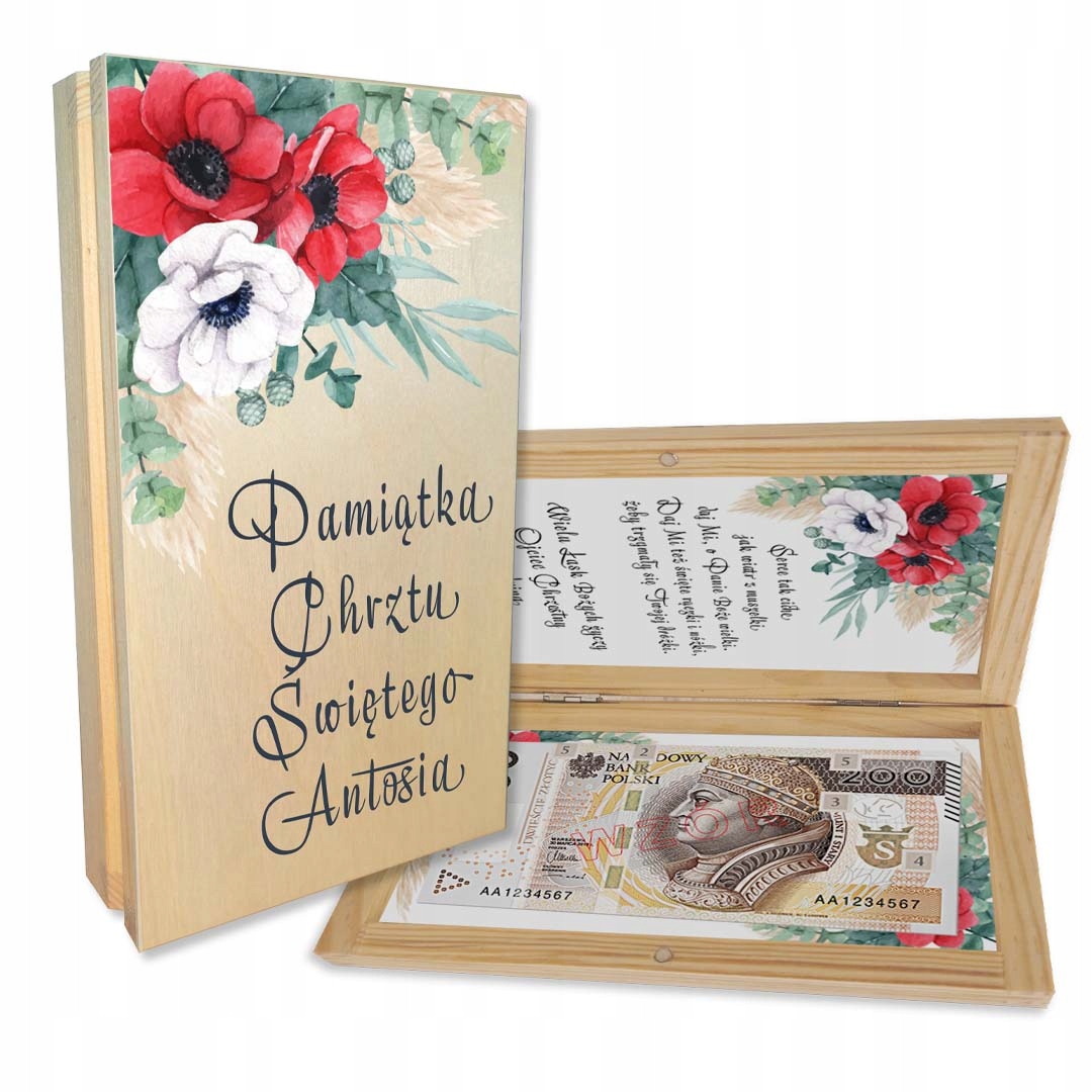 Сувенір на Святе Хрещення у вигляді скриньки. Коробка містить графіку з побажаннями та персоналізацією. Лицьова сторона коробки надрукована технологією УФ-друку. Кожна персоналізація готується індивідуально під клієнта. Скриньку чудово можна використовувати як скарбничку на свято Хрещення. Банкноти не входять до коробки.